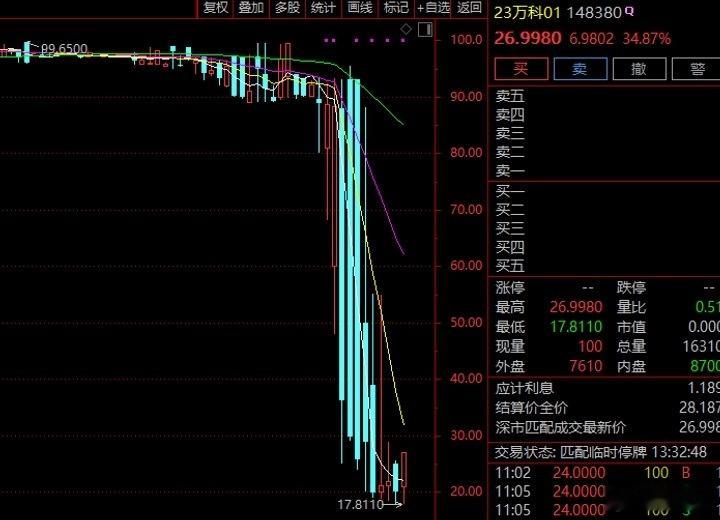 午后,万科股债集体异动。万科A涨停,成交额超30亿元;港股万科企业涨超15%。万科境内债“23万科01”“21万科04”“21万科06”“22万科02”均涨超30%。万科A午后涨停