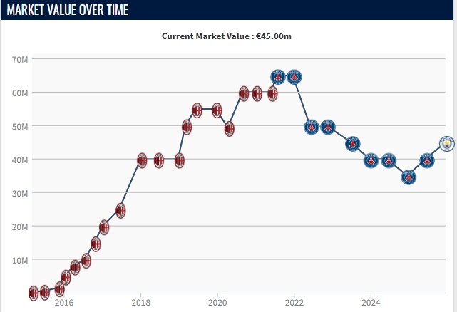 多纳鲁马身价曲线↓