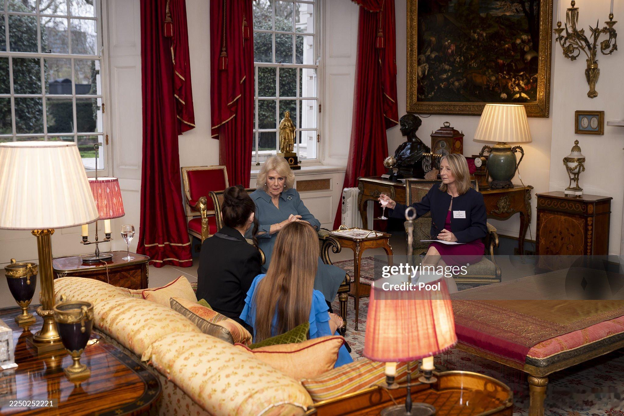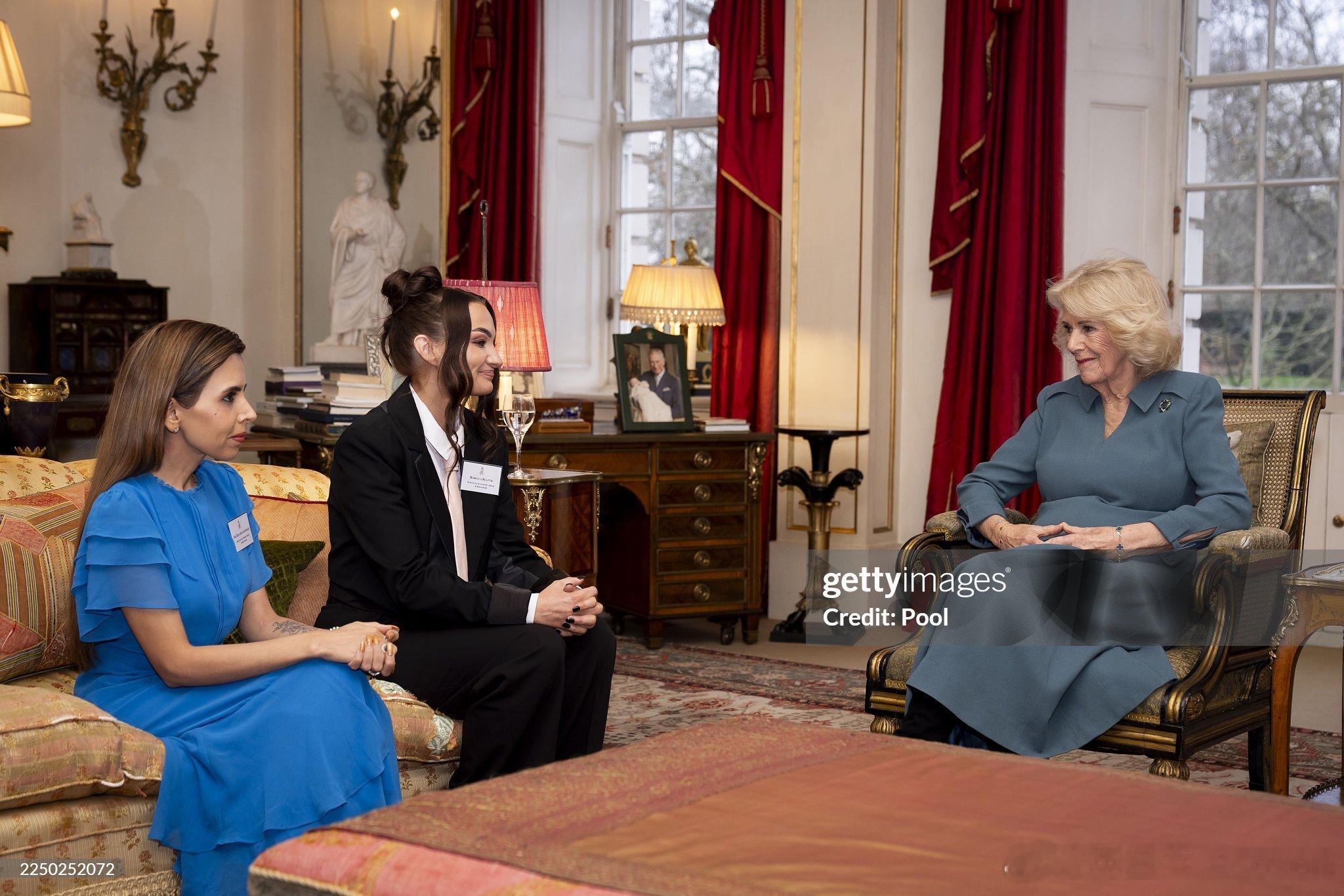 卡米拉王后 【news】卡米拉王后在与比纳·科塔克·达萨尼博士、丽贝卡·比蒂以及“幸存经济虐-待”首席执行官萨姆·斯梅瑟斯的私人会谈中。在伦敦克拉伦斯宫为英国慈善机构 Surviving Economic Abuse(SEA)举办的招待会上,SEA 是英国唯一致力于提高对经济虐-待的认识并改变应对方式的慈善机构。