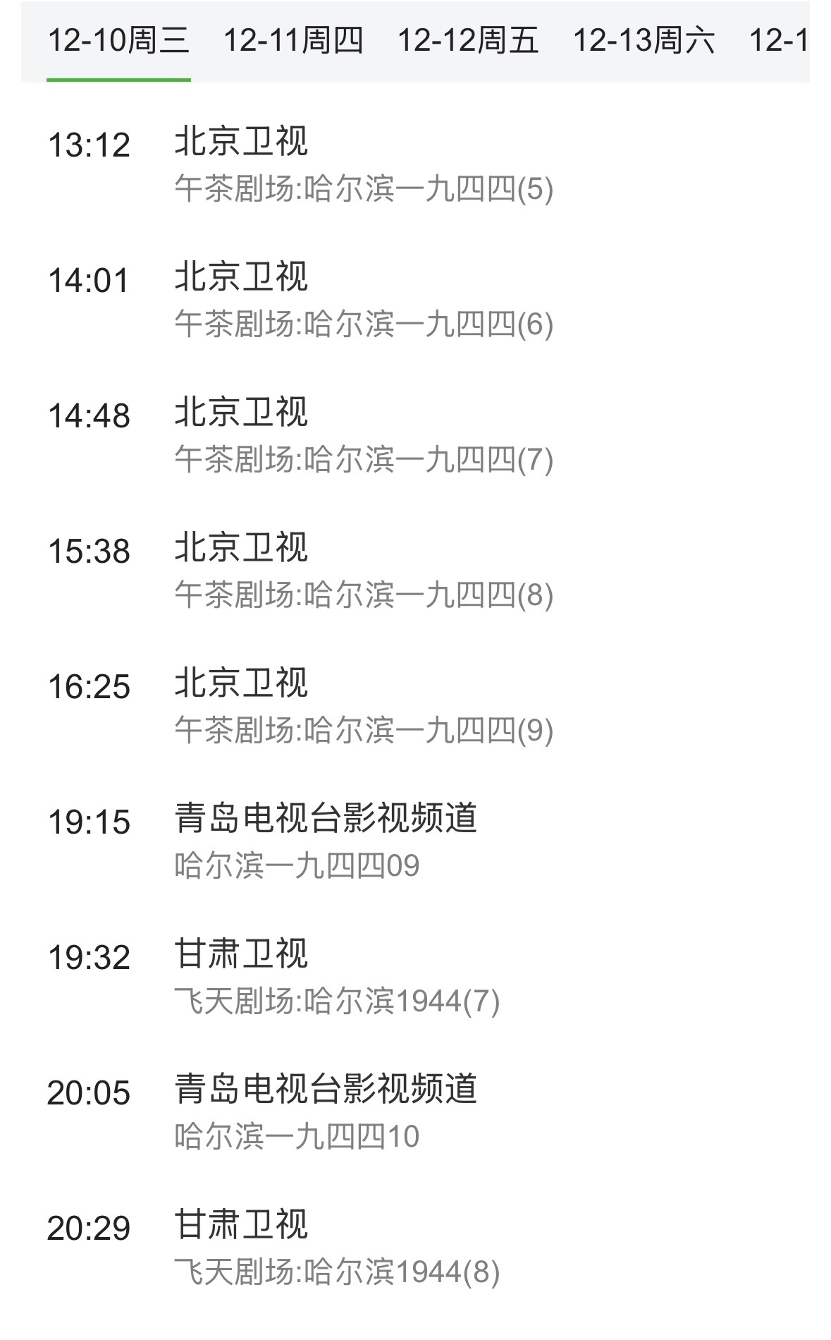 杨幂《哈尔滨一九四四》又重播了!目前已经在33个台上星60轮啰~北京卫视12.9开始每天下午档播出,青岛电视台影视频道应该是12.6黄金档播出。杨幂哈尔滨一九四四杨幂关雪
