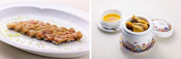 脆皮福鳗(左)和沙虫干溢鸭汤(右)