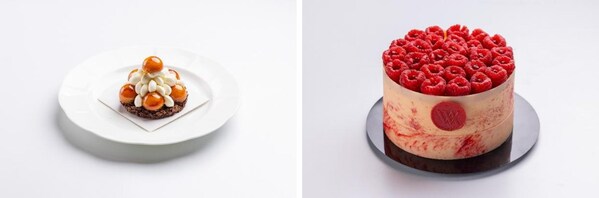圣多诺泡芙塔(左)和经典红丝绒蛋糕(右)