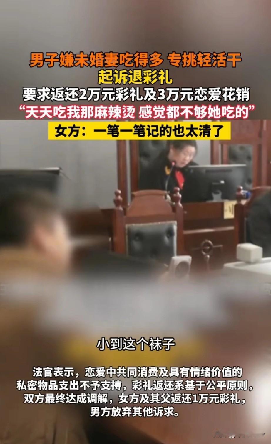 哈尔滨男子分手神操作:女友帮看店半年,竟因“吃得多”要退5万? 家人们谁懂啊!哈尔滨五常这起分手纠纷,简直把“斤斤计较”刻进了DNA里!经媒婆介绍订婚,男方给了2万“头茬礼”,女方二话不说去男方麻辣烫店当免费劳动力,干了整整半年活,结果被嫌“挑轻巧活吃得多”遭分手,还被起诉要返还2万彩礼+3万恋爱花销,这操作真是小刀剌屁股——开了眼了! 先捋捋这离谱剧情:同村相亲、订婚给钱、共同生活,本来是奔着结婚去的正经流程。女方在麻辣烫店端盘子、擦桌子、招呼客人,半年下来没要一分工资,就算真挑了点轻巧活,难道还抵不上一个普通服务员的工钱?再说“吃得多”,麻辣烫店还缺口吃的?合着女方是来免费打工还得饿肚子的? 男方更绝的是,连3万恋爱花销都要往回要。按照法律规定,恋爱期间的日常消费性支出属于情谊行为,根本不能要求返还 。这3万难不成是把女方半年吃的麻辣烫、喝的矿泉水都按市场价折算出来了?难怪网友调侃:“建议男方列个流水账,呼吸店里的空气是不是也得按分钟收费?” 其实这事的核心根本不是“吃得多”,而是男方不想结婚还想全身而退。根据最新的彩礼纠纷规定,未办结婚登记但已共同生活的,返还彩礼得综合考虑实际情况 。女方免费打工半年,早把2万“头茬礼”的价值挣回来了,真要算经济账,男方说不定还占了便宜。 婚姻本该是互相体谅,不是精打细算的买卖。男方用“吃得多”这种荒唐理由分手,还想着追回所有花销,既输了感情又丢了体面。要是一开始就没打算好好过,何必耽误人家半年时间? 这事也给大家提了个醒:订婚不是“买卖成交”,共同生活更不是“免费用工”。彩礼是心意不是筹码,恋爱花销是付出不是投资。遇到凡事都要掰扯清楚的伴侣,真得好好掂量掂量——连口吃的都要计较,以后的日子还能有啥温度? 你觉得女方该退钱吗?欢迎在评论区聊聊你的看法!