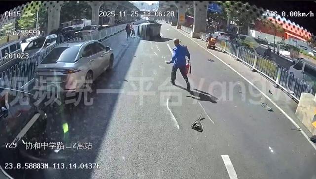 随后,余车长并未急于离开,而是立即报警说明事故详情,并在现场疏导交通,提醒过往车辆减速避让,避免二次事故发生。直至确认现场无其他安全隐患后,他才返回岗位,继续完成营运任务。