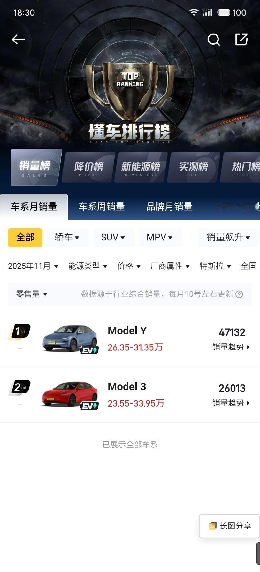 两款车一个月卖出七万多辆。 特斯拉才是真正的遥遥领先,但是比例每年都在下降啊!