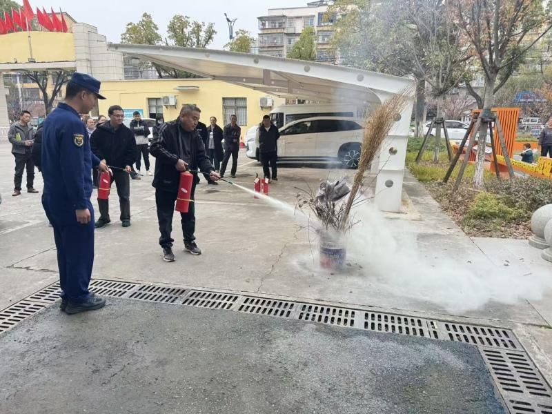 在随后的灭火实操环节,杨至涵现场演示了干粉灭火器的操作步骤(“提、拔、握、压”)和注意事项。参训人员轮流上场,亲身体验了如何使用灭火器对模拟火源进行扑灭。通过“零距离”接触和实战操作,参训人员基本掌握了灭火器的使用技能,并克服了面对火情的畏惧心理,提升了扑救初起火灾的实战能力。