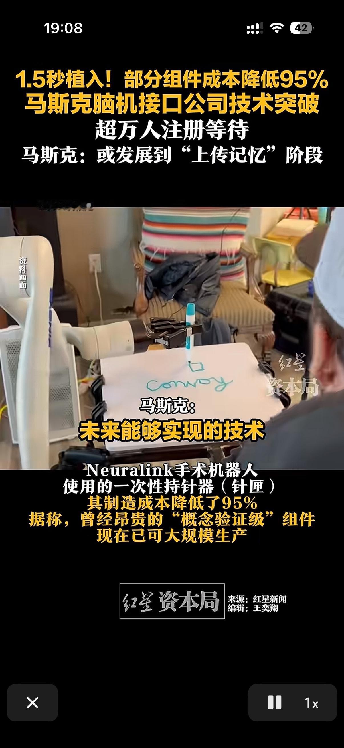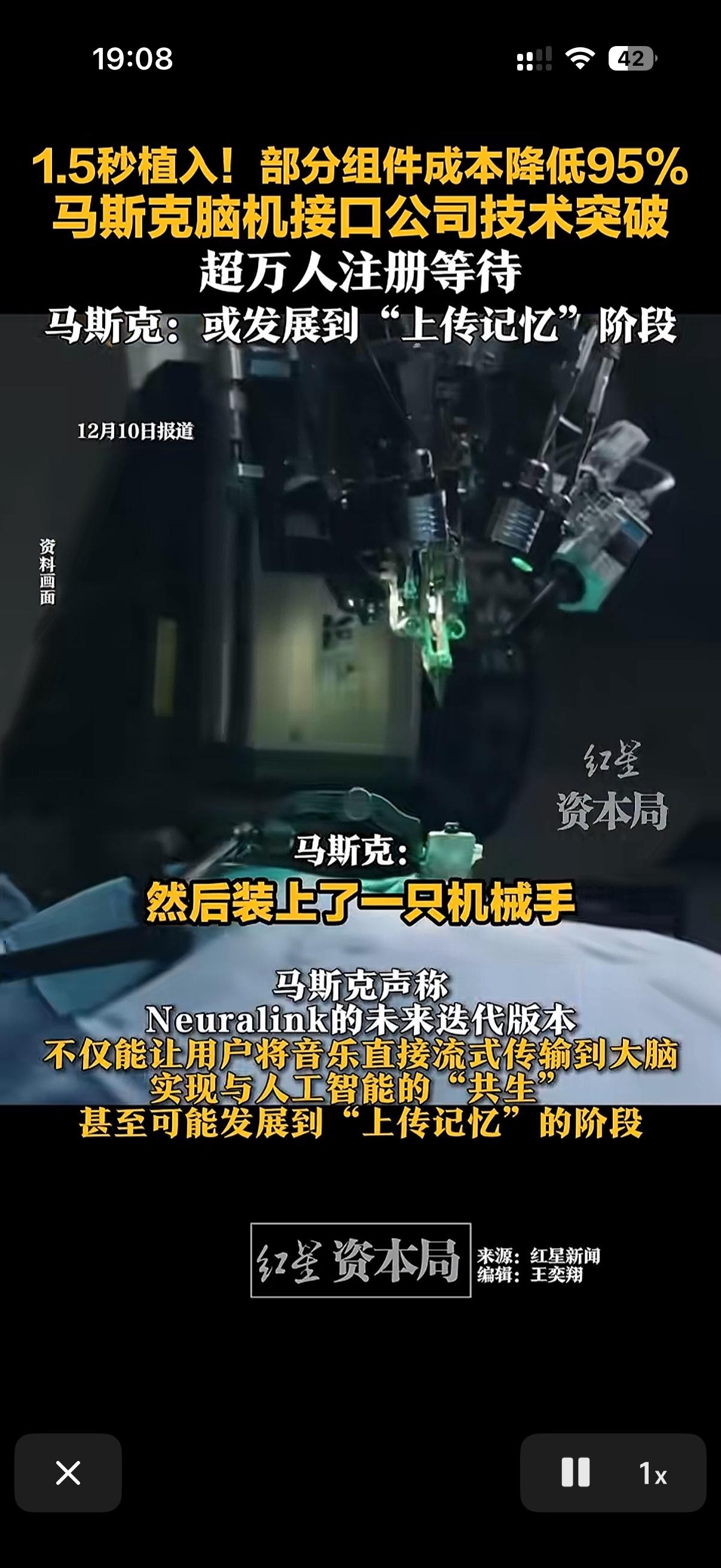 马斯克的脑机接口取得重大突破了! 马斯克展示自己的最新科研成果。脑机接口仅仅使用了1.5秒就可以植入。最关键的是成本居然下降了百分之九十五! 马斯克甚至还用星球大战里的天行者来举例脑机接口的应用方向。并表示未来希望能上传记忆! 今年年底目标是完成20例人体植入手术! 现在全球已有上万人报名参加实验! 如果脑机接口真的能够大规模实现。那么对那些瘫痪在床的病人无疑是个好消息马斯克 马斯克ai智能 马斯克展示脑机接口新进展