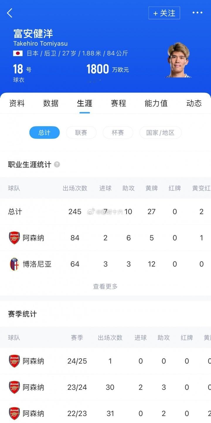 7月被阿森纳解约!罗马诺:27岁富安健洋即将与阿贾克斯签约半年12月10日讯 知