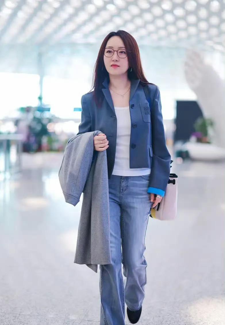 哎,你看杨钰莹这状态!深圳宝安机场,独自推着行李箱出现。她一身清爽的雾蓝色针织衫