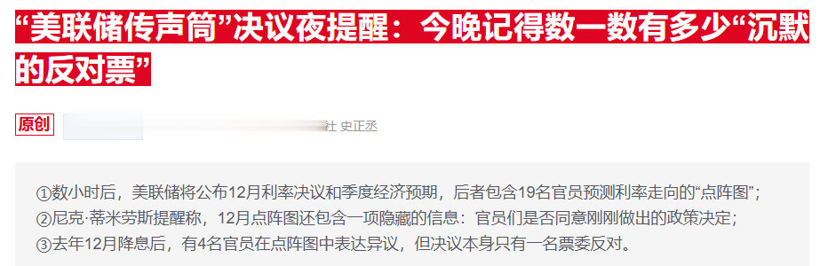 分析认为,交易员们已不再关注决定本身,因为他们认为降息已经是板上钉钉之事。相应地,他们将更加关注“点阵图”,以及美联储主席鲍威尔在新闻发布会上答问环节的措辞与语气变化。