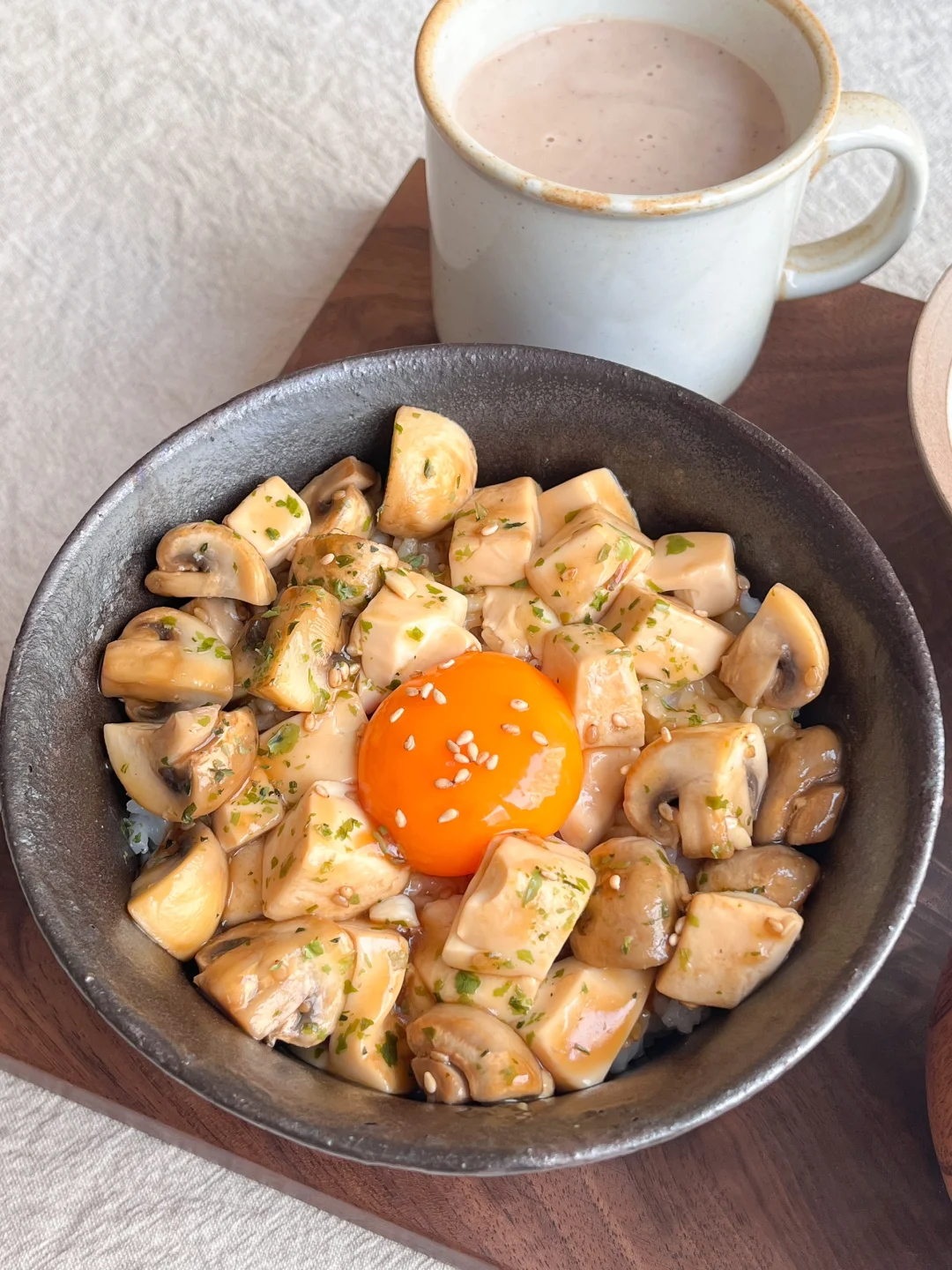 双孢菇豆腐饭非常下饭 淡淡的黄油香味
