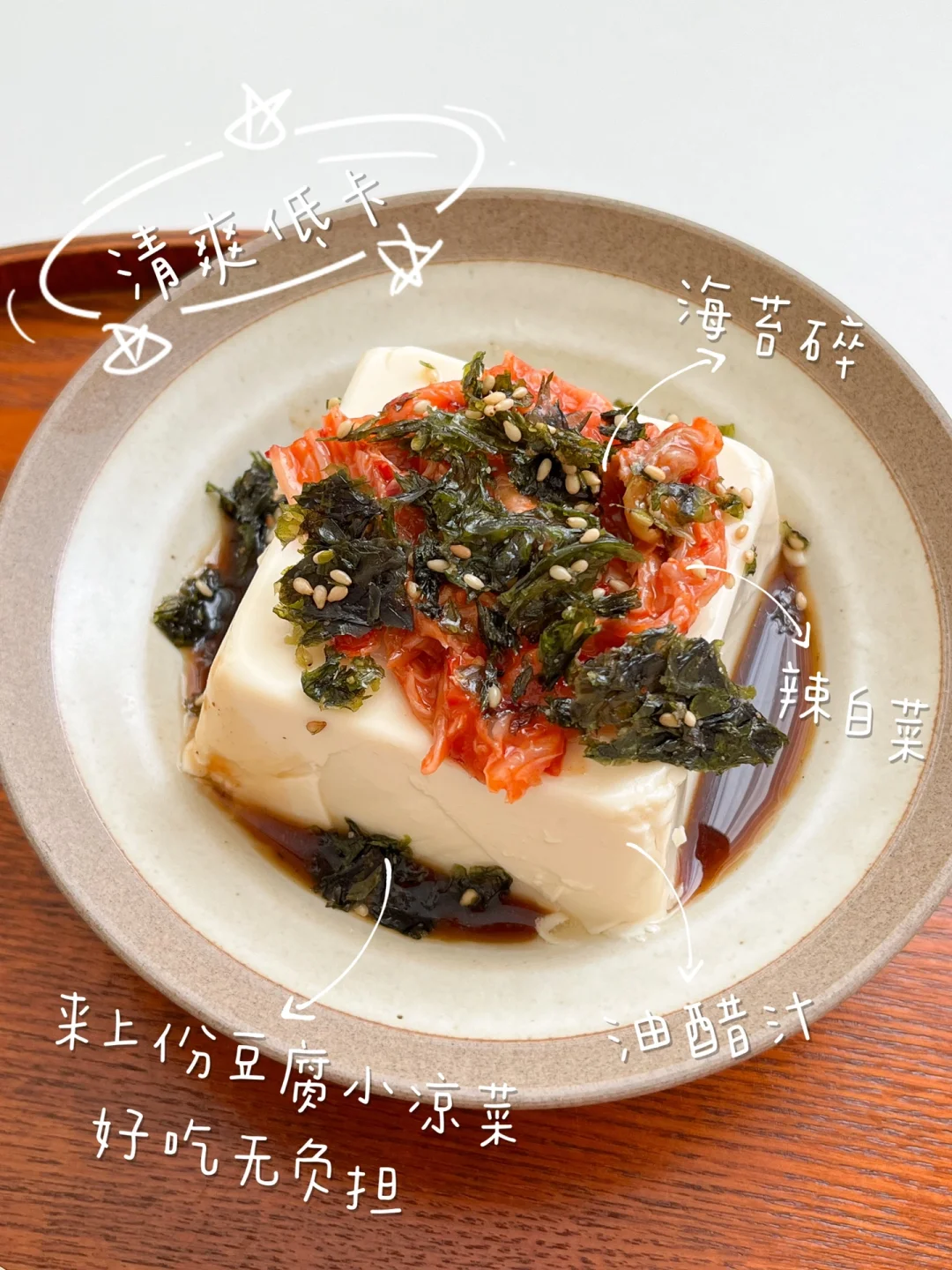 豆腐和泡菜就是不会出错的组合,可以煮成辣辣的泡菜豆腐汤,也可以放点海苔碎做成清爽可口的凉拌小菜。都是家里随手可得的食材,几分钟就能做好