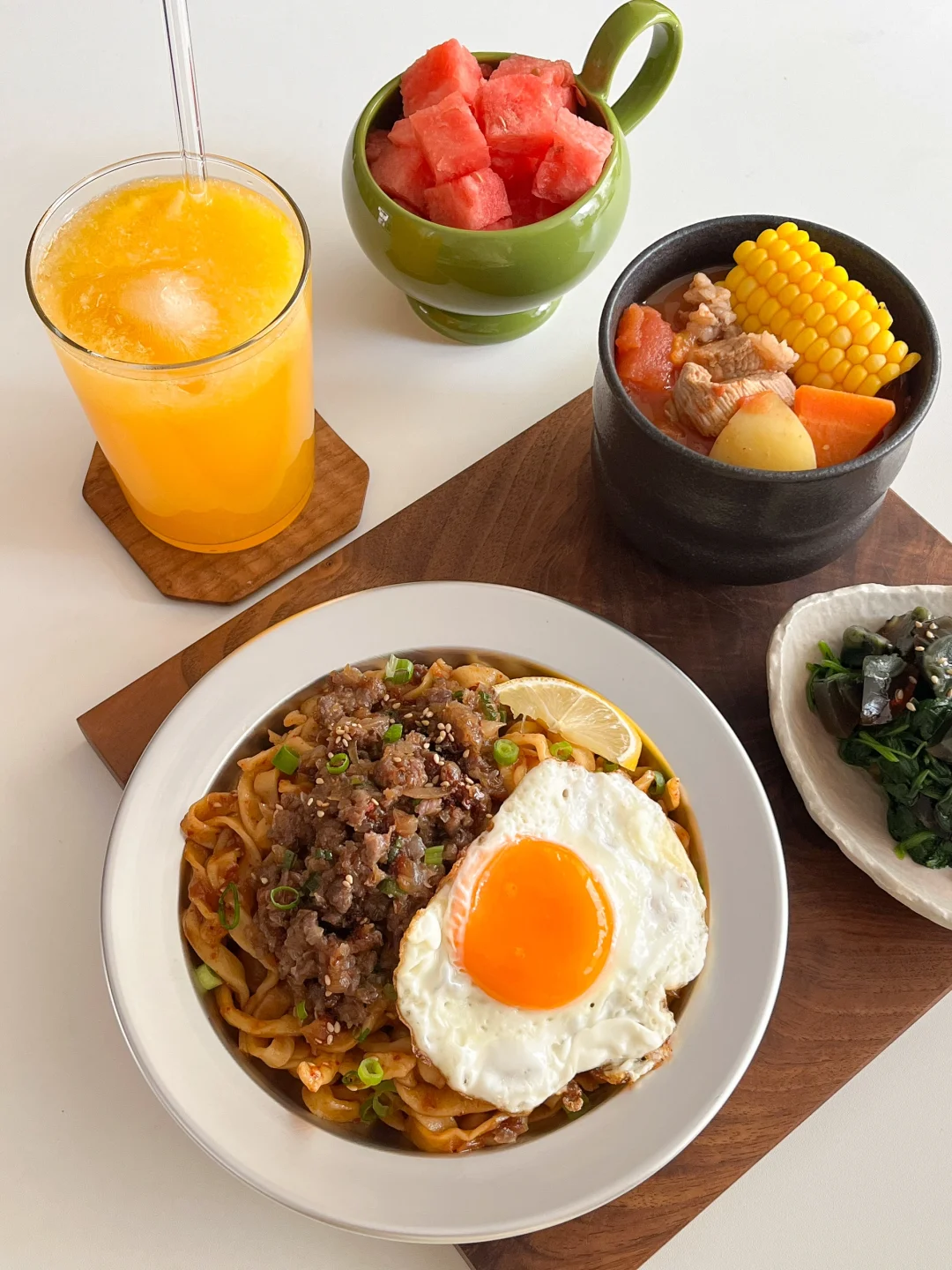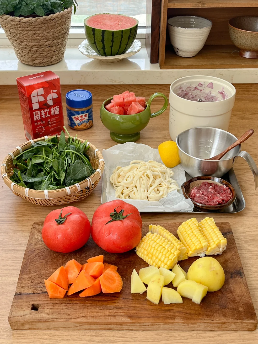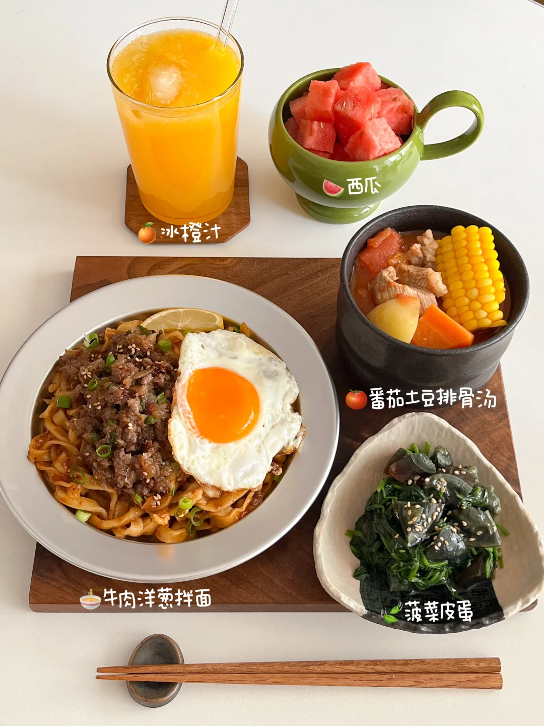 今天的饭: 牛肉洋葱拌面🍜 菠菜拌皮蛋🍃 番茄土豆排骨汤🍅 美人西瓜🍉 冰橙汁🍊 女孩子生理期这几天记得补补铁 铁剂太难喝了 还是软糖类的适合我 都放进我的小药盒 每天安排的明明白白 随身也放几颗 想起来就能吃🤍❤️