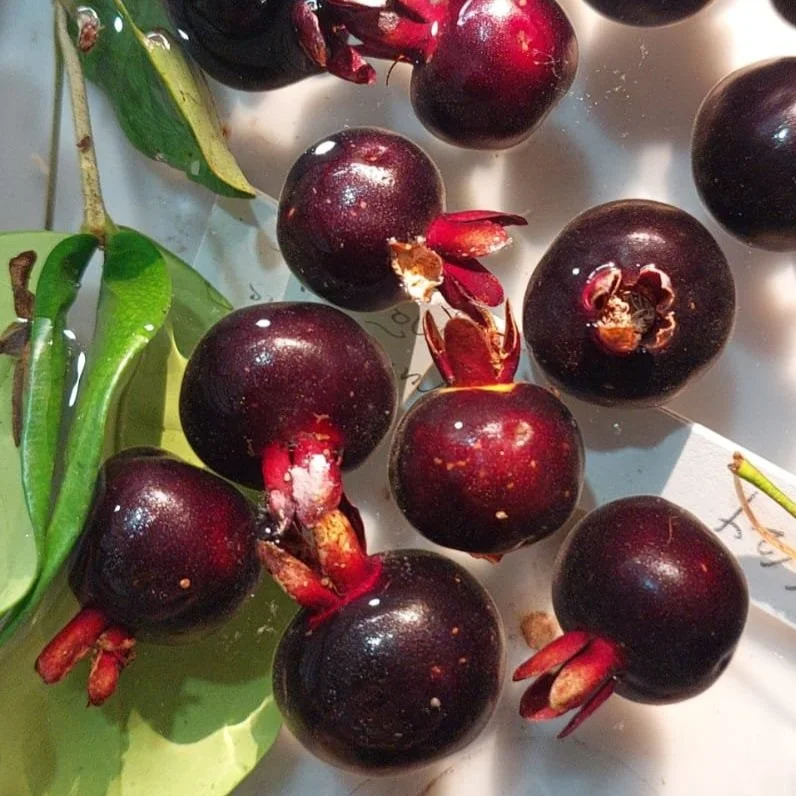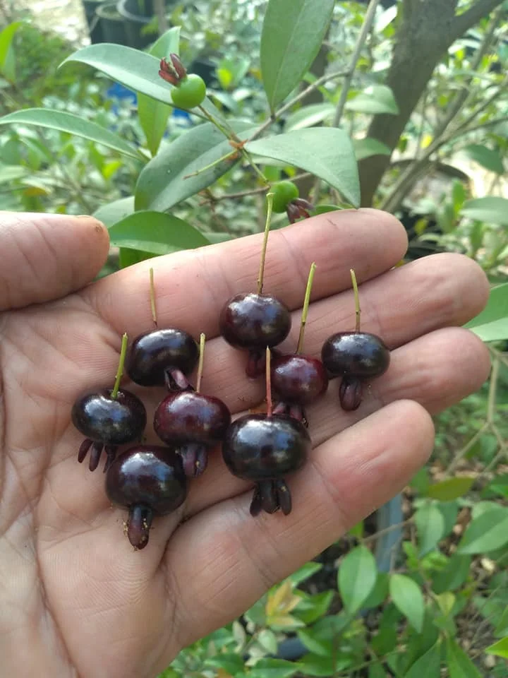 Eugenia itaguahiensis是一种原产于巴西的小树,结出甜美的深紫色果实。 它在热带气候中茁壮成长,喜欢排水良好的土壤和充足的阳光,尽管它可以忍受一些阴凉。以其狭窄的叶子和白色的花朵而闻名,它既多产又有观赏性,因其韧性和适应性而受到重视。 已开花结果,图九图十,味道甜美,算桃金娘类里味道很好的品种了,植株不大很适合盆栽,四年结果。 浆果稀有浆果植物科普每日植物稀有植物桃金娘可食用水果每天认识一种植物