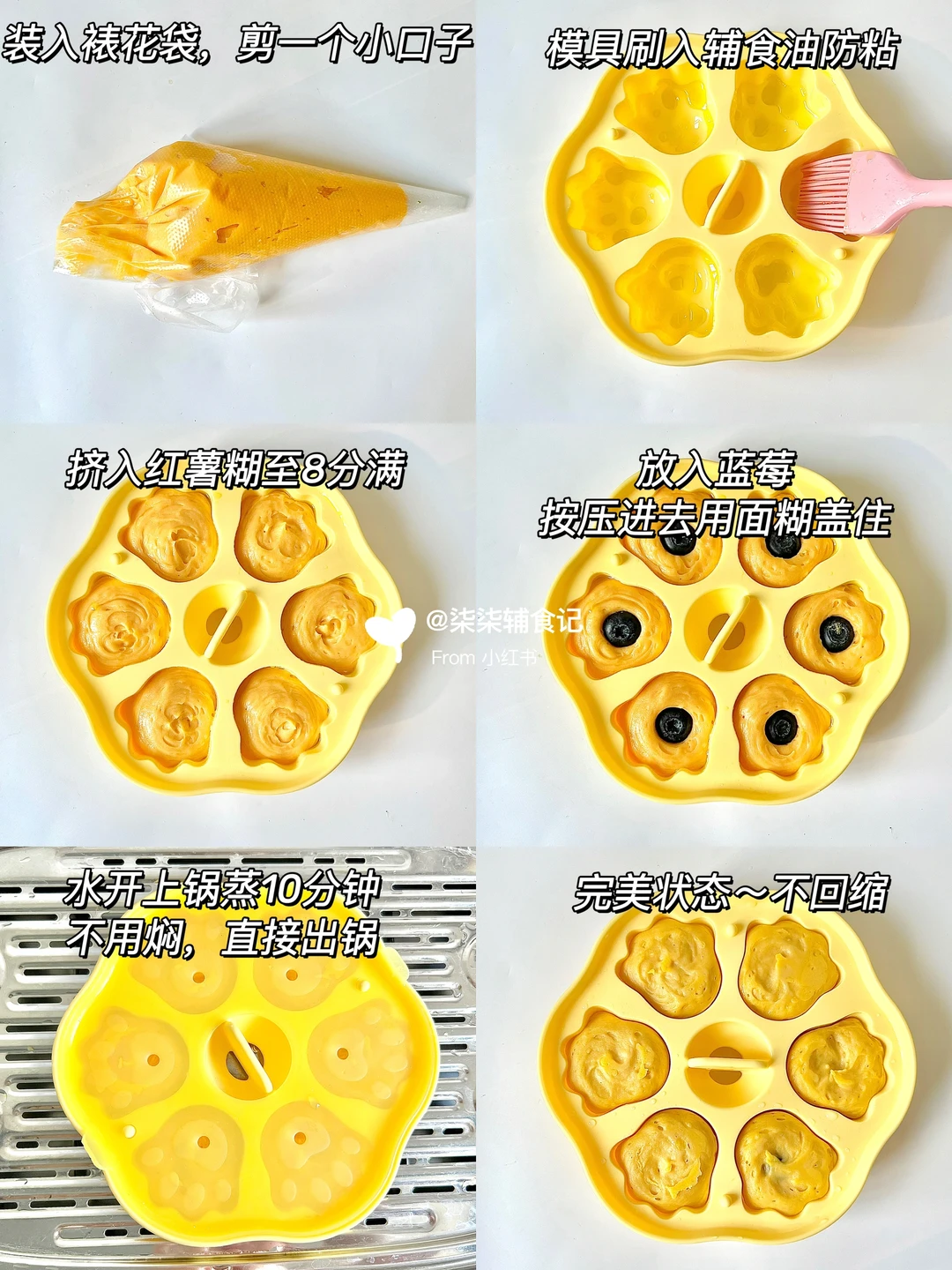 之前有姐妹说山药过敏,有没有红薯蓝莓蒸糕,这就来啦~