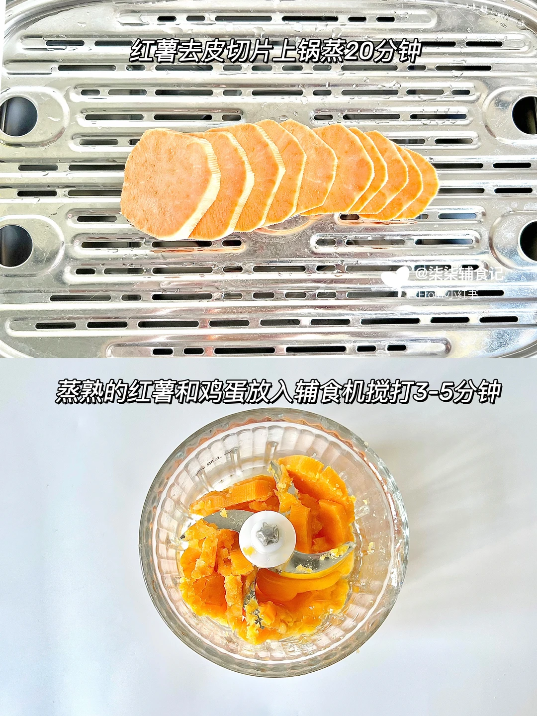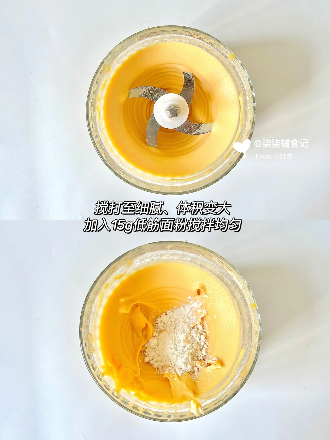 ▫️红薯、鸡蛋放入辅食机打打停停3分钟以上,打至细腻体积变大