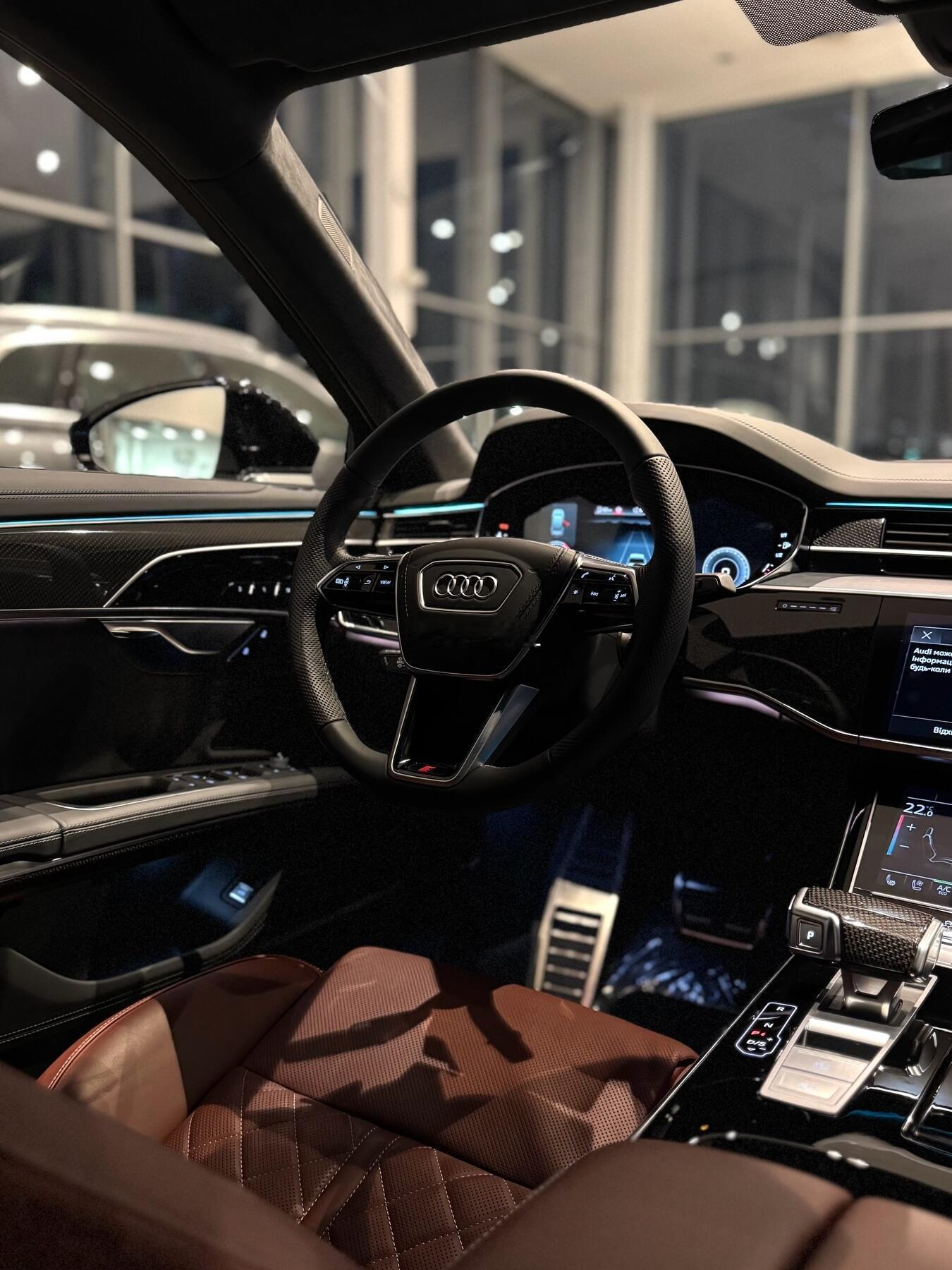 被天云灰奥迪S8硬控10秒,梅尔诺红内饰。漂亮吧奥迪s8