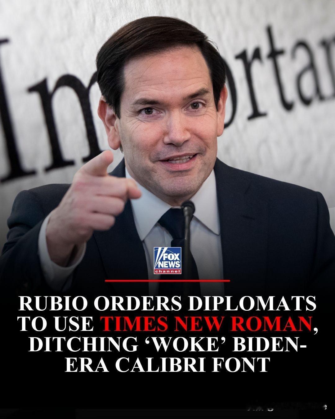 美国的与时俱进:国务卿马可·卢比奥命令所有美国外交官在官方通讯中使用 Times New Roman 字体,并驳斥拜登采用 Calibri 字体是“觉醒倾向”和“浪费”的多元化举措,不适合美国外交。 美国媒体纷纷评论,都认为这是一个挺有趣的政策变化,字体也能反映出是否具备多样化的倾向。