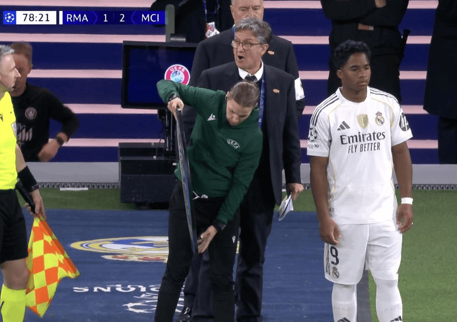 虎扑12月11日讯本轮欧冠,皇马1-2曼城,下半场比赛迪78分钟,皇马前锋恩德里克替补登场。