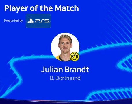 本场比赛布兰特梅开二度,赛后当选欧冠官方评选出的本场最佳球员。