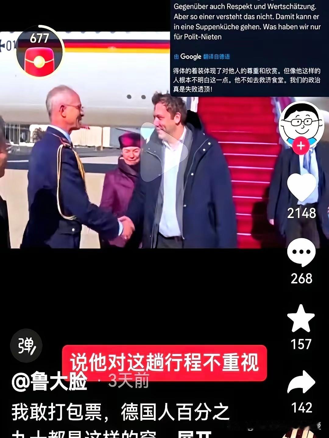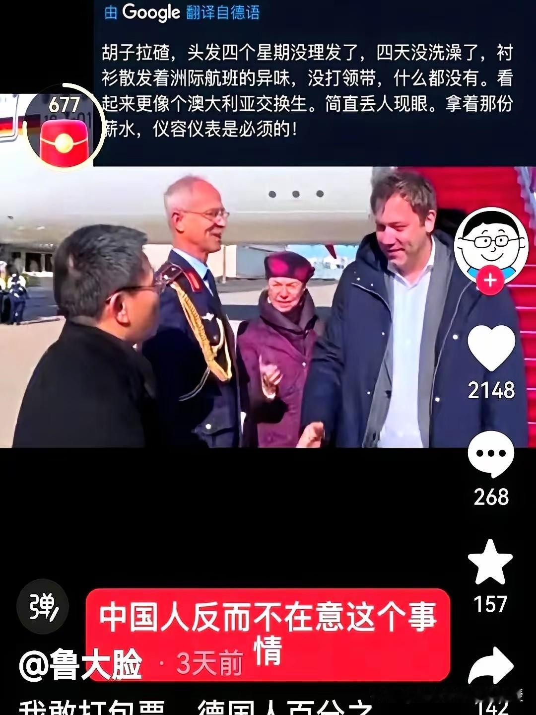 被下图逗乐了。看看德国外长克林贝尔的这身邋遢装扮,我又想起了美国前财政部长耶伦访华时的装扮,跨个黑布包,穿一件蓝衬衫黑裤子,一点都没有大国财政部长的风范。 这位德国外长看起来胡子邋遢,头发凌乱不堪。眼神更是一脸疲惫,一件通勤外套里面穿着西装,如此不修边幅的装扮,被德国网友集体吐槽,像是来中国要饭的,一点都不懂基本的外交礼仪。 在克林贝尔心里大概也挺憋屈的,自己只是帮着总理做个铺垫而已,也就正常出个差,平时就是这个凌乱的工作状态,本色出演而已,自己只是来稳定中欧关系的,又不是来做时装表演的。