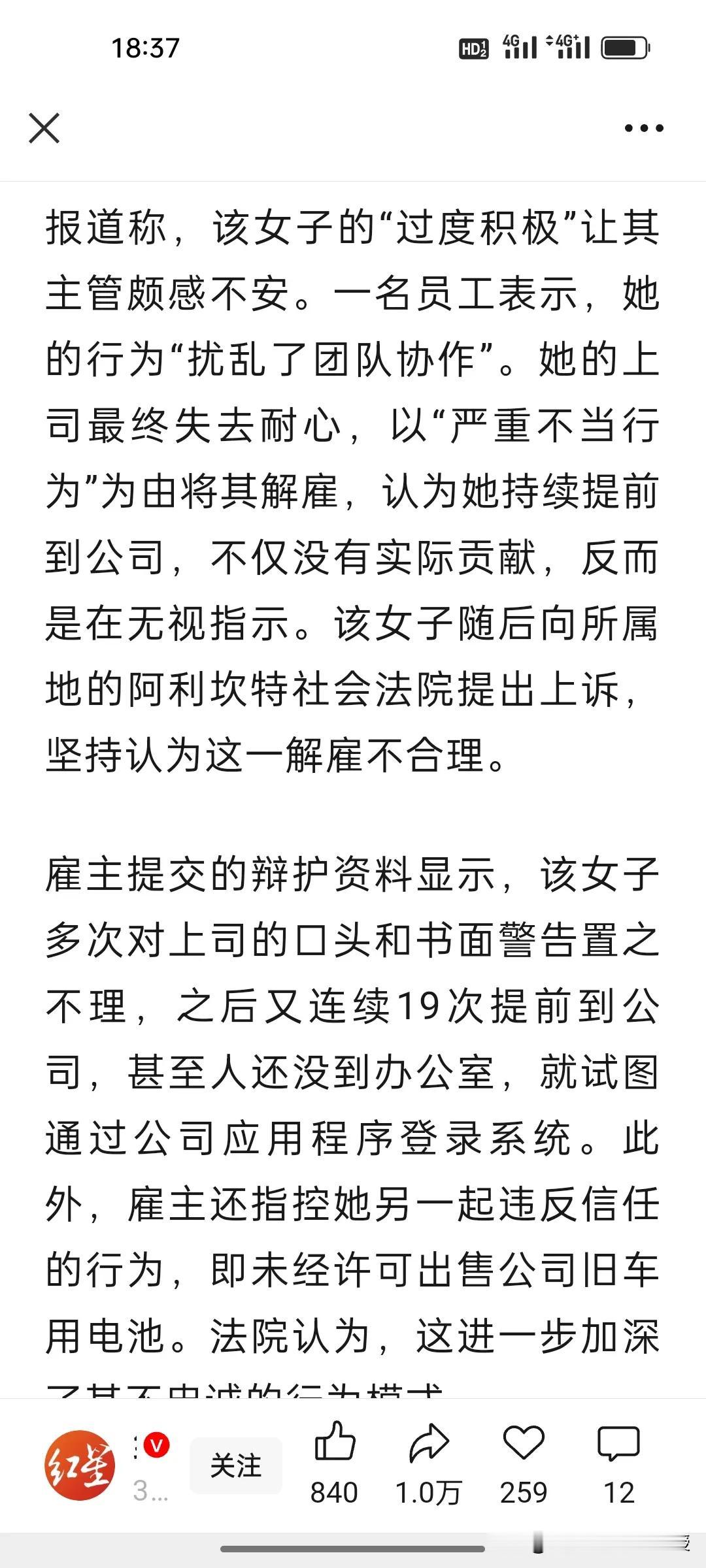 一位西班牙女子上班积极,提前到岗,还会被解雇,被认为是“扰乱团队协作”。遭到公司解雇后,法院却认为解雇合法,这在中国人看来无法想象,这要在中国的公司,大家应该都会把这个女士当做楷模标兵吧? 但是西方国家他们是严格遵守劳动法以及公司制度的,也就是俗称的“一根筋”。你早到公司了,工作那么积极,无视公司的规章制度,就是违反公司指令,就给别人产生内卷压力。 另外,德国部分办公楼会周五断电杜绝中国员工周末加班。他们这些国家主打的就是不内耗,不内卷。该工作就工作,该休息就休息。工作不是生活的全部,工作是为了更好的生活,不能做工作的奴隶。