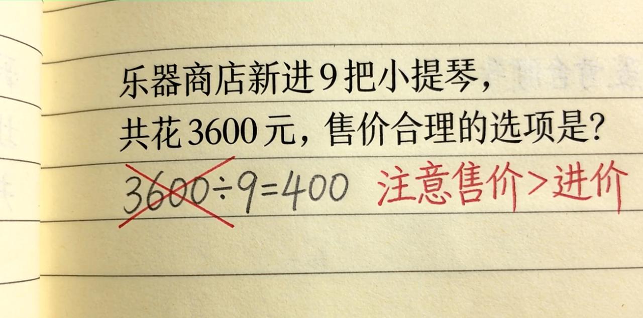 3600÷9=400被打叉!家长怒怼老师反被打脸,这道小学数学题藏着大陷阱 家长辅导作业翻车的名场面又添新案例!辽宁一位家长因儿子的一道数学题怒找老师理论,本想为孩子讨公道,结果却被老师一句话点醒,当场尴尬到说不出话。 据这位家长透露,儿子的作业里有一道题:乐器店新进9把小提琴,共花费3600元,问哪个售价选项合理。家长瞅着题目简单,当场给孩子算出3600÷9=400,笃定地让孩子选了400元的选项。 可第二天作业本发下来,这个答案却被老师打了个鲜红的叉。看着孩子委屈的模样,家长瞬间火冒三丈,当即找到老师质问:“这么简单的除法,400到底错在哪?” 面对怒气冲冲的家长,老师却淡定地指出了关键问题:这道题考的根本不是纯计算,而是生活常识!3600÷9=400算的是小提琴的进价,商家做生意哪有进价卖的道理?售价必然要高于400元才能盈利。 不仅如此,题目里的干扰选项还设置了单位陷阱,部分选项把“元/把”写成“把/元”,进一步考验孩子的审题能力。 这番解释让家长哑口无言,这才意识到自己只顾着算数字,完全忽略了题目里的“售价”二字。 如今的小学数学题早就跳出了纯计算的框架,越来越偏向生活化、实用性。这也给各位家长提了个醒:辅导作业别光顾着盯着算式,读懂题目背后的逻辑,比算出答案更重要!大家对此有什么看法?家长数学题 气人数学题 400乘以3 400题 买票数学问题 9709数学