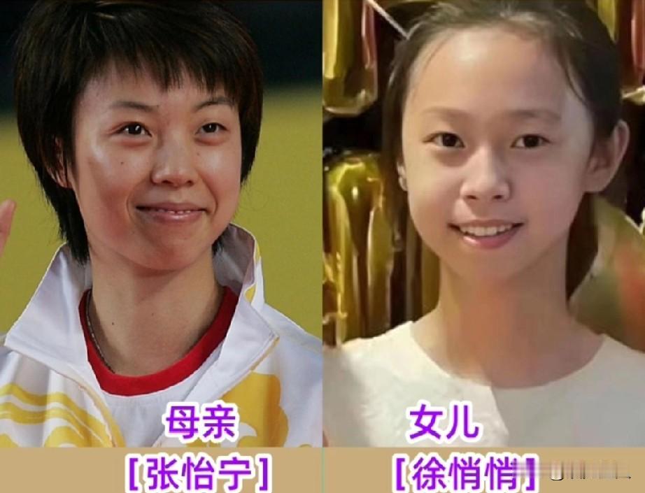 乒乓球冠军和子女合照!张怡宁的女儿徐悄悄,这闺女也太像妈妈了吧,尤其是嘴巴,简直