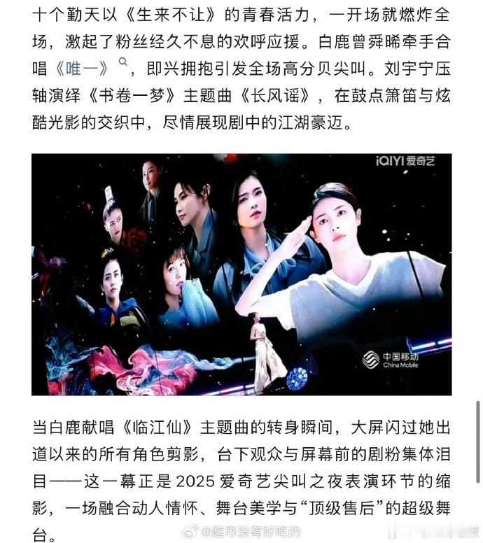 以后爱奇艺会给白鹿更多的资源了,原因很简单,看看尖叫之夜她的待遇就知道了。尖叫之