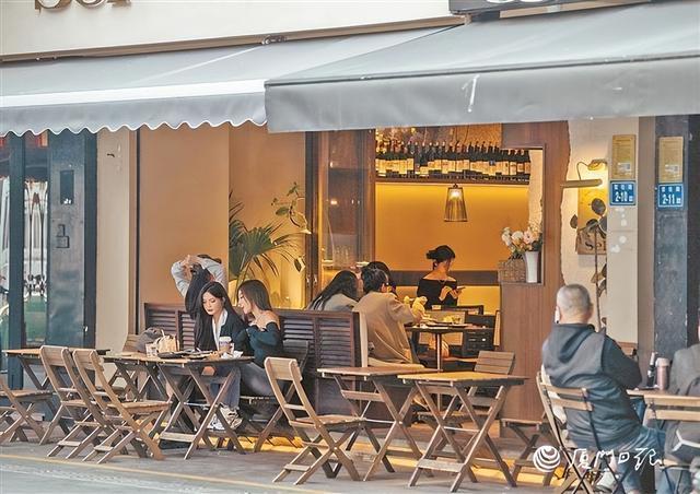 市民在官任社区“适当跨店经营”黄线区域内享受下午茶时间。(厦门日报记者林铭鸿摄)