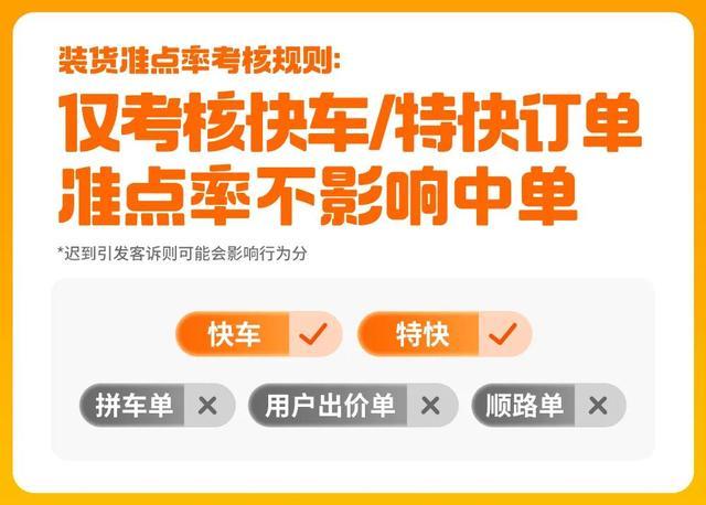 公开内容显示,货拉拉平台仅考核快车、特快订单到达装货地的准点率,拼车单、用户出价单、顺路单等不考核准点率。