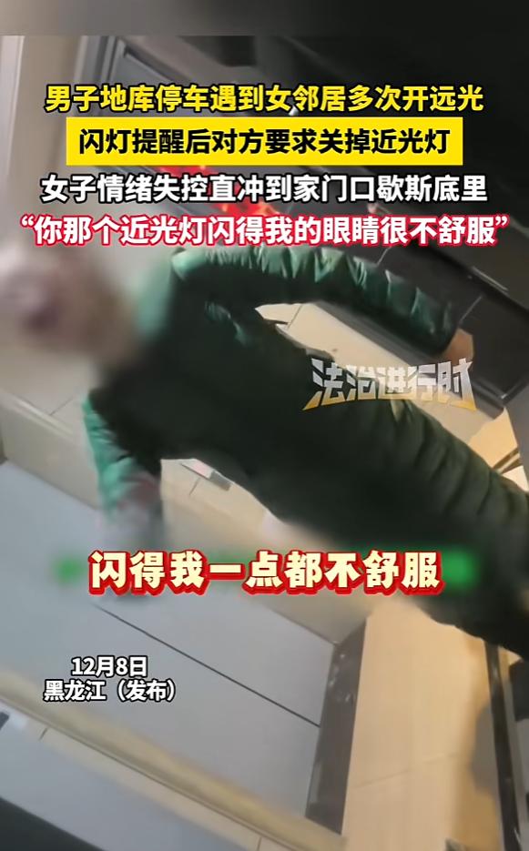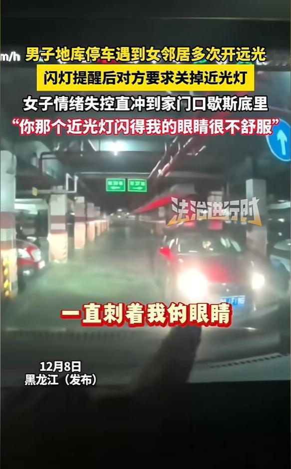 [中国赞]12月8日,黑龙江一男子开车进地库,遇开远光女邻居,闪灯提醒对方,不料,女邻居直接破防,找上门与男子对峙,情绪失控歇斯底里:你的近光灯,照得我眼睛不舒服! (信源:法治进行时——男子地库停车遇到女邻居多次开远光闪灯提醒后对方要求关掉近光灯女子情绪失控直冲到家门口歇斯底里“你那个近光灯闪得我的眼睛很不舒服) 地库行车被远光晃眼,好心闪灯提醒,换来的却是对方上门歇斯底里的质问。黑龙江一男子的遭遇,简直把“利己主义”的荒诞演绎到了极致,也戳中了无数人遭遇蛮不讲理者时的憋屈痛点。 事发当天,男子在地库正常开车,前方女邻居的车辆却全程开着远光。刺眼的强光穿透黑暗,让男子视线受阻,只能勉强减速慢行。出于安全考虑,他轻轻闪了两下灯,本意是提醒对方切换近光,这是开车人都懂的基本默契。 可谁也没想到,这个善意的提醒,竟成了“战争”的导火索。女邻居非但没有切换灯光,反而怒气冲冲地跟着男子到了车位旁。车还没停稳,她就摔门而下,径直冲到男子车前,开启了歇斯底里的对峙模式。 更让人匪夷所思的是,女子的指责完全颠倒黑白。她声称不是自己的远光有问题,反而是男子的近光灯晃得她眼睛不舒服,嘴里不停念叨着男子“没素质”“不会开车”。 男子试图解释地库光线昏暗,远光会严重影响他人视线,可女子根本不给任何说话的机会,一次次蛮横地打断他的辩解,情绪激动到极点时,更是嘶吼着叫嚷:“你把我杀了啊!有本事你现在就把我杀了!” 看着对方歇斯底里的模样,男子想着都是低头不见抬头见的邻居,没必要把关系闹僵,便压下心中的火气,耐心地继续解释,甚至为了平息对方的怒火,主动关掉了自己车上的近光灯。 可即便做到这份上,女子依旧不依不饶,直到她自己停好车、熄了火,全程都没关掉那盏刺眼的远光。 男子心里满是委屈,他坦言这已经不是女邻居第一次在地库开远光了。此前他就曾遇到过几次,也试着委婉提醒过,可对方要么当作没听见,要么态度敷衍,丝毫没有改正的意思。这次好心提醒,反倒被倒打一耙,这种憋屈劲儿,换谁都难以忍受。 事情被曝光后,瞬间引发网友热议,评论区里满是对女子行为的吐槽。有网友直言:“开远光的成了受害者,被晃的还要赔笑脸,这逻辑简直比天方夜谭还离谱。”还有人吐槽:“地库本来光线就暗,开远光纯属害人,这种人根本没把别人的安全放在眼里。” 女子的行为,正是典型的利己主义作祟。她只顾及自己开车方便,完全无视远光会给他人带来的安全隐患,更无视交通规则里“禁止在光线充足区域使用远光”的基本要求。 在她的世界里,自己的感受永远是第一位的,别人的善意提醒是“找茬”,别人的正常行驶是“挑衅”,这种极端自私的心态,让人不寒而栗。 而男子的忍让,更像是很多人的真实写照。遇到蛮不讲理的人,第一反应不是硬碰硬,而是想着“多一事不如少一事”“顾全大局”,哪怕自己受点委屈,也希望能平息矛盾。可现实往往是,你的退让换不来对方的体谅,反而会被当成软弱可欺,进而助长其嚣张气焰。 生活中,这样的场景并不少见:地铁上明明是自己占了别人的座位,被提醒后反而指责对方“小题大做”;超市里不小心碰到别人,不道歉反而抱怨对方“走路不长眼”;开车时加塞被阻拦,竟下车对对方破口大骂。 这些人永远站在自己的角度看问题,把别人的包容当成理所当然,把自己的错误当成别人的罪过。 男子的憋屈,也是很多人的共同困境:遇到不讲理的人,吵起来显得自己没风度,忍下去又实在咽不下这口气。其实真正的解决办法,从来不是单方面的忍让,而是要明确底线、坚守原则。 对于这种无视规则、蛮不讲理的行为,没必要一味迁就,该提醒的提醒,该维护自己权益的就要勇敢维护,一味的退让只会让对方得寸进尺。 希望这位女邻居能早日认清自己的错误,明白遵守交通规则、尊重他人权益是基本的做人准则。也希望更多人能从这件事里吸取教训,摒弃利己主义的心态,多一份换位思考,多一份相互体谅。毕竟,只有每个人都守住规则、尊重他人,我们的生活环境才能更和谐、更美好。