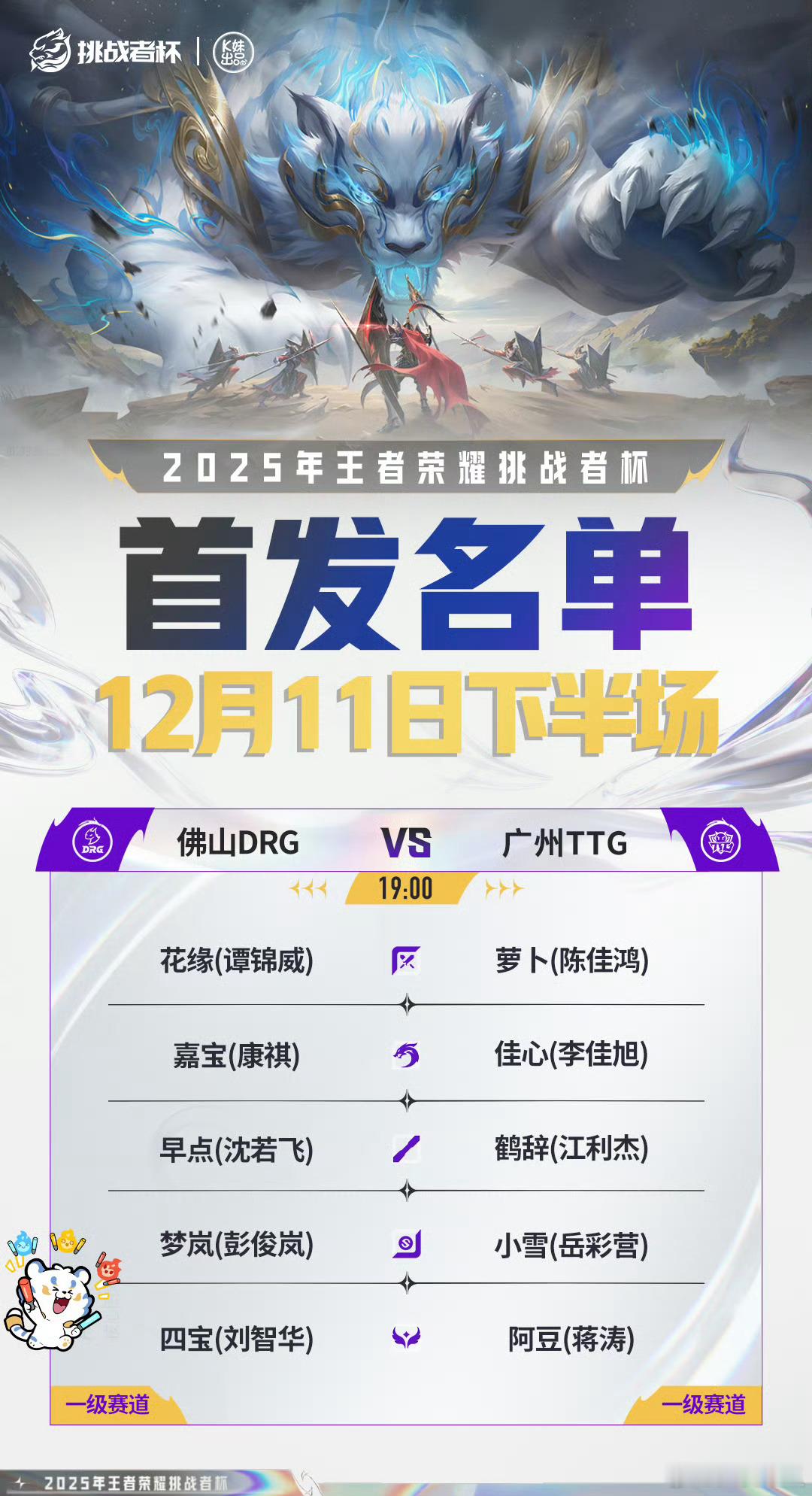 2025王者荣耀挑战者杯今日首发名单