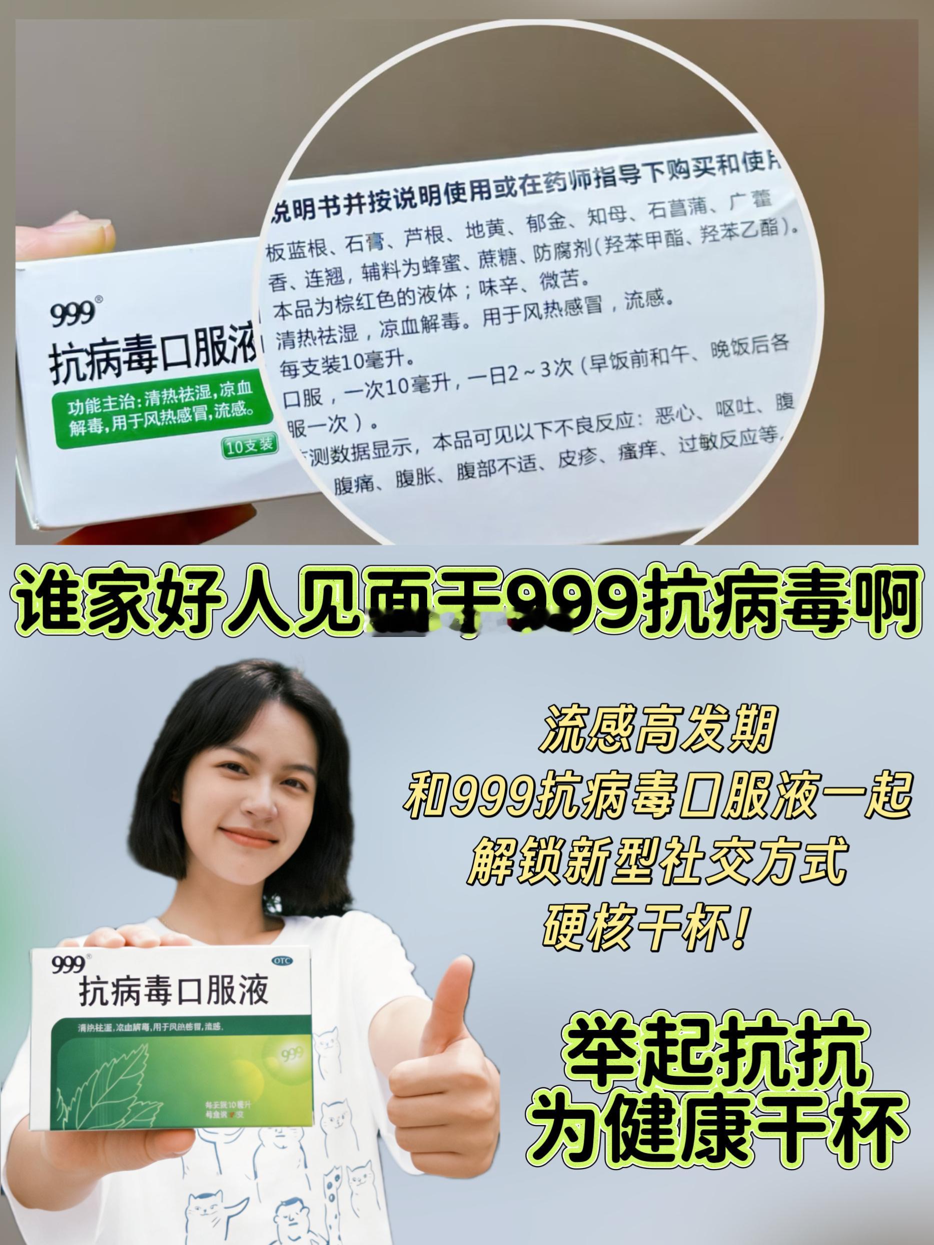 谁家好人见面干999抗病毒啊 流感高发期,我和朋友的硬核社交变成了:举起“抗抗”,为健康碰杯!🦠🥂朋友们,都说今年的流感季让社交“速冻”。可上周末,我和闺蜜们却让一次差点泡汤的聚会,变成了一场笑声掀翻屋顶的 “线下硬核养生局” ——我们真的见面了,也真的干杯了,只不过杯子里装的,是金光闪闪的999抗病毒口服液!🍻🍻🍻🍻🍻计划原本是热辣的火锅,但阿琳一句“儿子班上倒了一片”让气氛骤冷。正当我们对着手机叹气时,刚“阳康”的西西从包里“唰”地掏出一盒口服液,杵在桌上:“火锅下次,今天咱们‘药疗局’!是姐妹,就为健康碰一杯!” 💪这操作让全场愣了两秒,随即爆发出巨大的笑声和共鸣。“这个好!我正好嗓子有点干!”“我包里也有,本来想提醒你们备点!”❄️🔥 原来,在流感高发季,最时髦的“社交硬通货”和最快拉近距离的“破冰”话题,就是这份对彼此健康的坦率关心。于是,画风突变。热腾腾的茶水边,我们人手一支“抗抗”。✅我像品鉴香槟一样举起它,对着光看那澄澈的金色液体。✅西西不仅自己喝,还非要给我们科普:“看成分表,板蓝根、石膏、芦根…这都是清热祛湿、凉血解毒的,专治咱们这种喉咙干痒痛的‘风热感冒’!”✅阿琳认真地补充:“但得看清楚,孕妇和哺乳期的姐妹可绝对不行,脾胃特别虚寒的也得慎重点。”✅连最怕吃药的慧子也壮着胆子加入:“为了能继续约饭,拼了!”“来!敬健康!”“敬咱们这帮怕死又爱聚的养生朋克!”“干了这杯,病毒退散!”🍻我们清脆地碰杯,然后一饮而尽。那一瞬间,没有酒精的刺激,但一股草本植物的清润感和朋友间毫无保留的暖意,却从喉咙一直熨帖到心里。我们的话题,也从八卦自然转向了更务实的分享:哪个老中医的方子管用、孩子发烧如何物理降温、彼此公司最近的请假政策……这种在特殊时期共享“生存智慧”的体验,让我们的联结充满了共患难的踏实感。🍻🍻🍻🍻🍻这场别开生面的聚会,也刷新了我们的“社交礼仪”。✅伴手礼升级见面不再是甜品奶茶,而是递上一盒999,附带一句:“备着,但希望你用不上。”🤔✅关怀落地化直接分享药箱储备和康复经验,行动比一句“多喝水”有力千万倍。✅约定更走心分别时的标准话术变成了:“保重身体,下次见面,希望咱们能放心地吃上那顿火锅!”我恍然大悟,这杯“抗抗”,我们干的哪里是药?我们干的是一种清醒又温暖的生活态度:是在风险面前互不嫌弃的担当,是把关心转化为具体行动的默契,更是对“好好生活”这份朴素愿望最热烈的致敬。 它让我们在必须谨慎接触的时期,反而创造了一种更亲密、更真诚的相聚。所以,别再抱怨流感让社交消失了。真正的友谊,从来都能在限制中找到绽放的创意。 下次约会,如果你的朋友也带着一丝咳嗽或担忧,不妨大方提议:“要不,咱们今天以‘药’代酒,碰一杯?”为健康干杯,就是为下一次更无忧的欢聚干杯!🎉愿我们都能用这种硬核的方式,守护好自己,也守护好我们想见的人。 💖