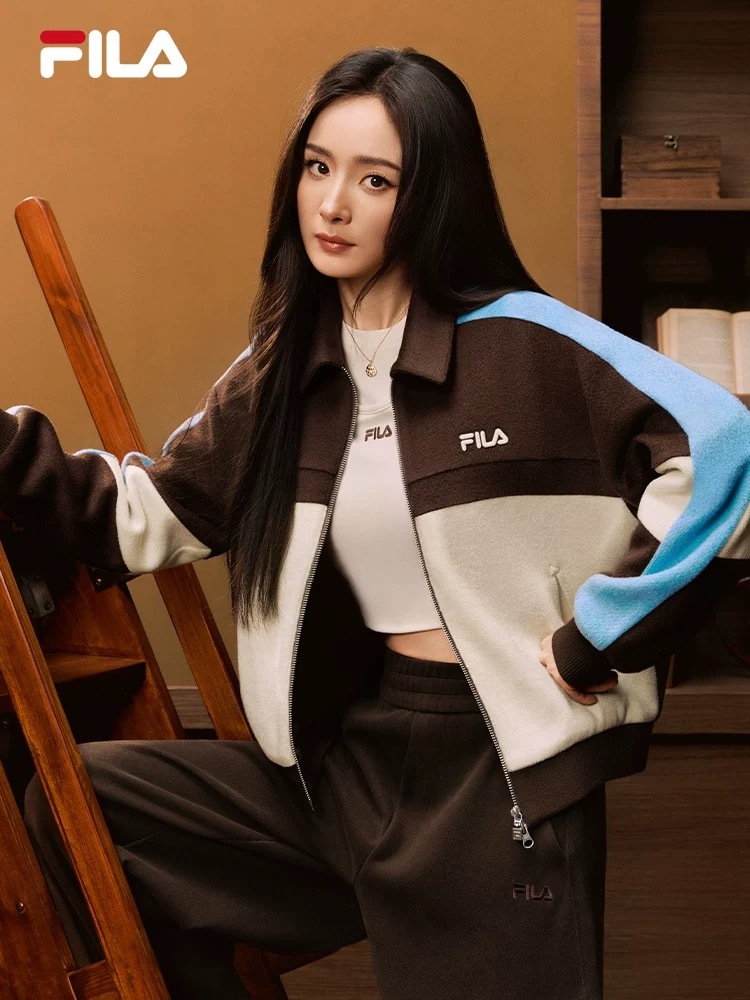 杨幂fila名誉合伙人 Fila不语,又上了新图2026年春新款,穿宽松外套翻领