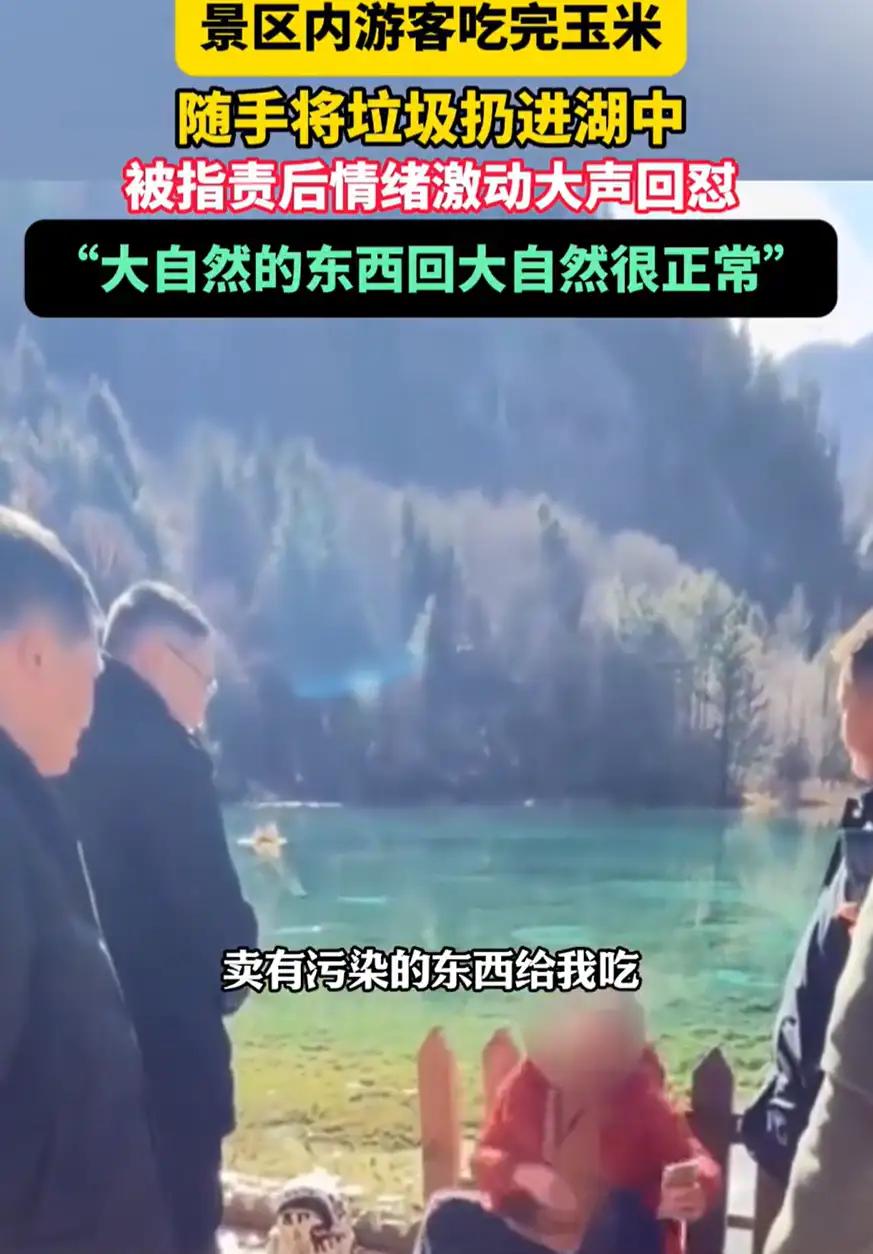 四川阿坝,一男子去九寨沟游玩,没想到,他却把吃剩下的玉米直接扔到了水里,有游客看到后上前指责,认为他这样做污染了环境,可男子却认为自己没错,还情绪激动的喊道:大自然的东西回大自然很正常!网友:胡说八道。 据目击者描述,该男子啃完玉米后,随手就将玉米棒抛进景区的溪流里。旁边游客见状立刻上前制止,指出这种行为会污染水体、破坏景区生态。 没想到,男子不仅拒不认错,反而情绪激动地反驳:“玉米是大自然的东西,回大自然很正常!” 这番言论让在场游客都十分气愤。九寨沟的水清澈见底,是景区最宝贵的自然财富,也是需要精心呵护的生态屏障。玉米棒看似是天然食材,但随意丢弃在水中,会慢慢腐烂变质,滋生细菌,影响水质,还可能对水中的鱼虾等生物造成危害。 景区内随处可见禁止乱扔垃圾的提示牌,遵守规定是每个游客的基本义务。 网友们也纷纷表态“胡说八道”。有网友直言,爱护环境不是一句空话,不能用“回归自然”当借口,行破坏之举;还有人表示,文明旅游是底线,每个人都应该敬畏自然、守护美景。 九寨沟的美,源于大自然的馈赠,更离不开每一位游客的守护。文明出游,不只是挂在嘴边的口号,更应落实到不乱扔垃圾、不破坏生态的一举一动中。只有人人都心存敬畏,才能让这份人间仙境般的美景,长久地留存下去。