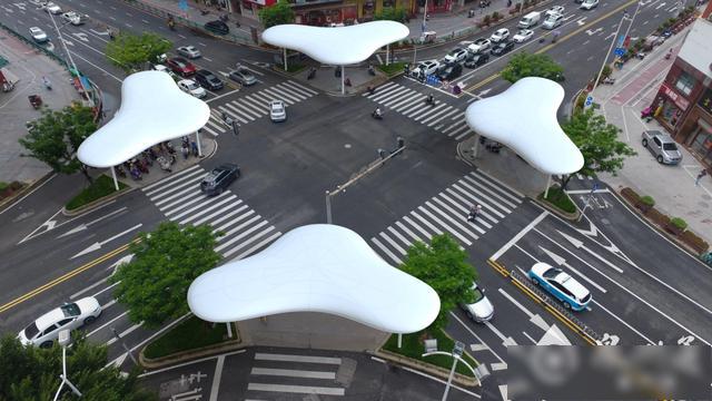 样式二:以轻盈灵动的“云朵”为概念,融入泉州海洋文化元素,打造别具一格的遮阳装置,将用于坪山路与津淮街交叉路口。
