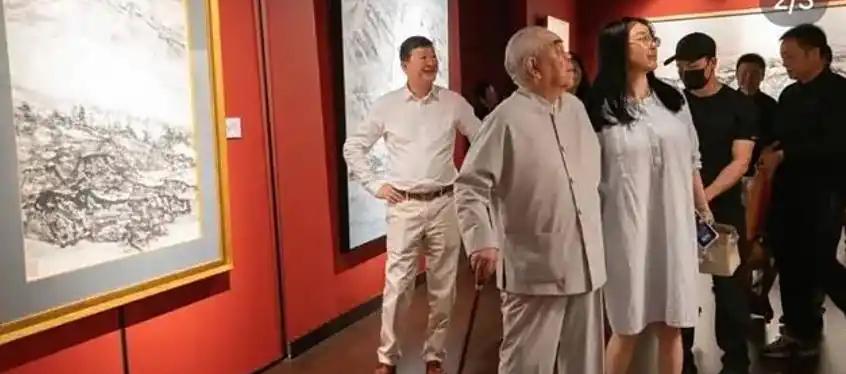 今年7月份,徐萌陪同范曾一起看展,当时还纳闷这个徐萌怎么长胖了这么多,而且没有不化妆打扮,有点不修边幅,实在不像她的做派,穿着裙子也是肥肥大大,猛一看还以为是睡衣。 现在明白了,敢情那时候徐萌就怀孕了,当时看照片一直认为是徐萌牵着范老,怕他行动不便,现在回看,感觉更像是范曾小心拉着徐萌的手,怕在人多的地方挤着肚子里的孩子。 87岁还能当爹,范曾真的让人不得不佩服。