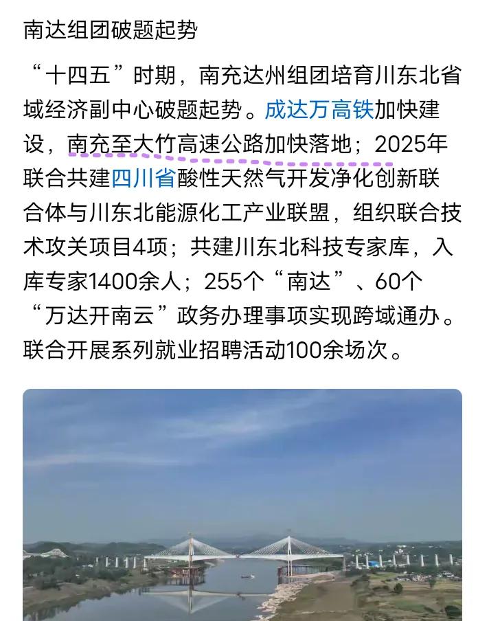 南充至达州大竹未来将修一条直达高速对接正在修建的大垫高速,沿途主要途经蓬安银汉镇、广安花桥和龙台镇、渠县琅琊和广兴镇等地附近,目前正在处于审批研究等前期工作,预计2年内有望实质性开工建设(个人观点),南大高速全长约92公里,起于南充高坪区斑竹乡附近与G42沪蓉高速T型互通,止于大竹县牌坊乡附近与G65包茂高速和正在建设的大垫高速十字互通,沿途需要依次跨越或穿过G85银昆高速、S15镇广高速、渠江、襄渝铁路、华蓥山等地,未来全线建成后南充开车来往大竹将只需1.5小时左右,比现在绕行南大梁高速营山段至少节省20分钟,节假日车流量大的时候也能为G42沪蓉高速和南大梁高速起到分流作用。