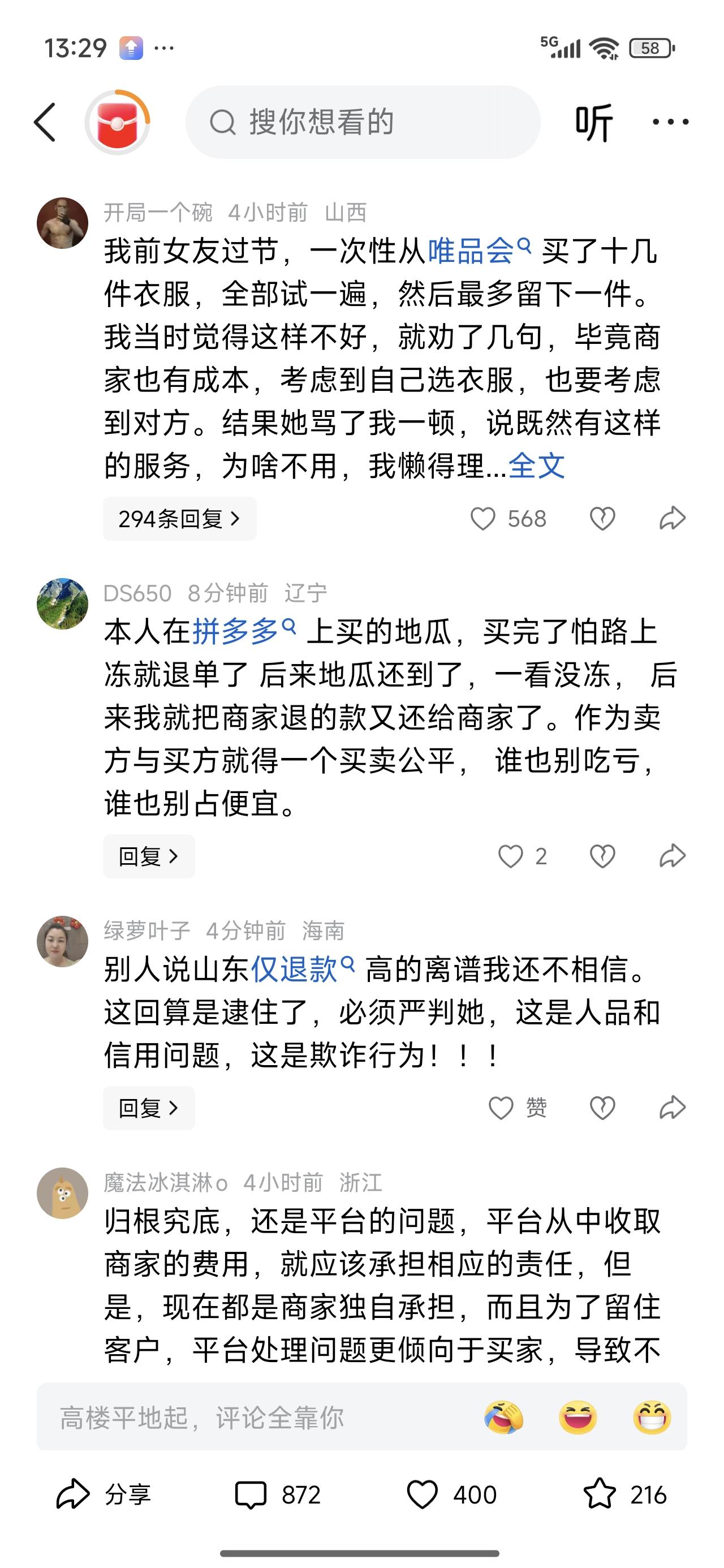 山东仅退款女子已归案。这事儿太大了,她结局就是进去吃馒头大白菜,没有太多油腥的那种。早上鸡蛋咸菜。 太不拿商家的钱当钱了!深扒可能不止这一家。山东仅退款的大旗扛的真是稳稳当当的。你受得了你说。 这种人千万别学,一传十,十传百。这要是形成产业链!山东丢大人了! 真的,现在已经把江浙沪逼的都不爱发货给山东了!以后看还要怎么混!把后台给商家看看吧!退货很少的可以发货。多的就拉黑得了!