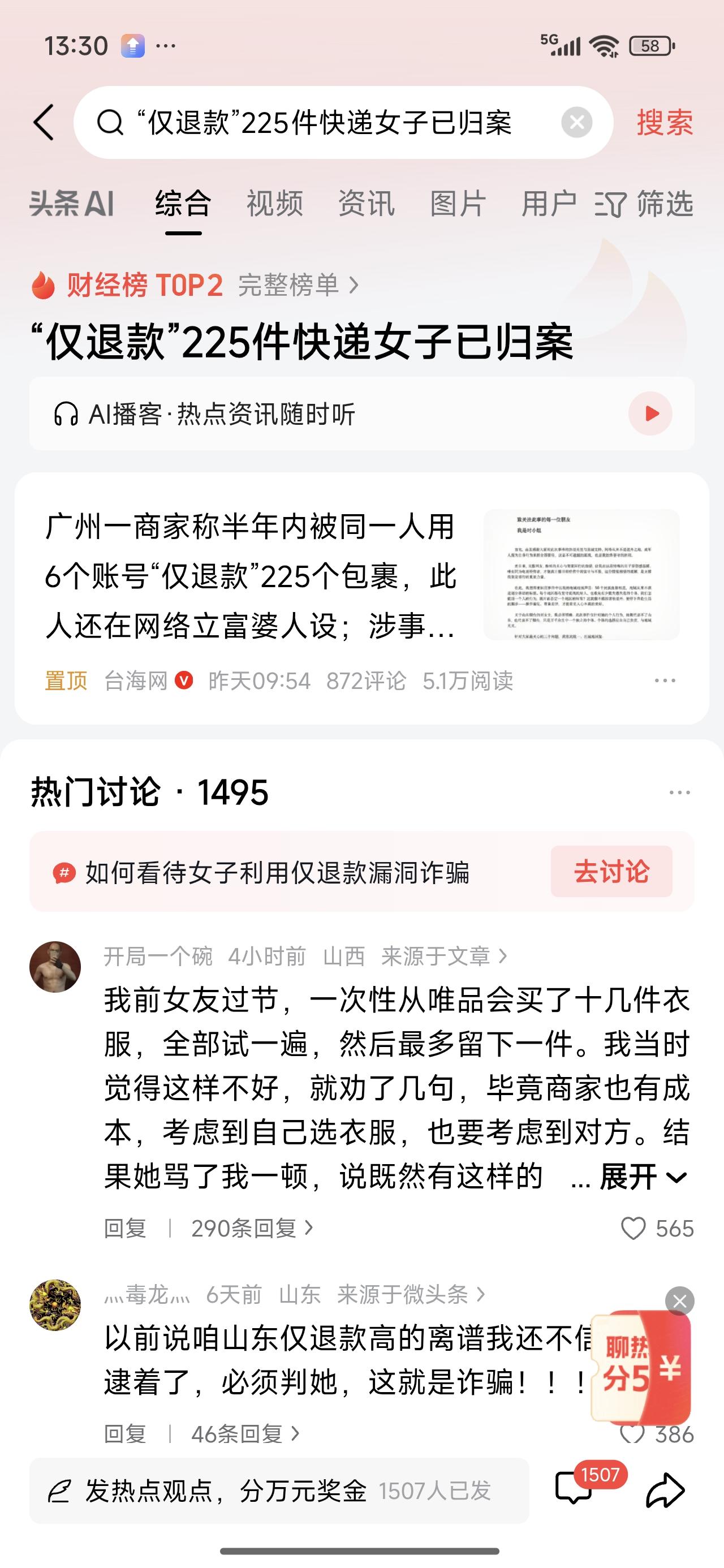 山东仅退款女子已归案。这事儿太大了,她结局就是进去吃馒头大白菜,没有太多油腥的那