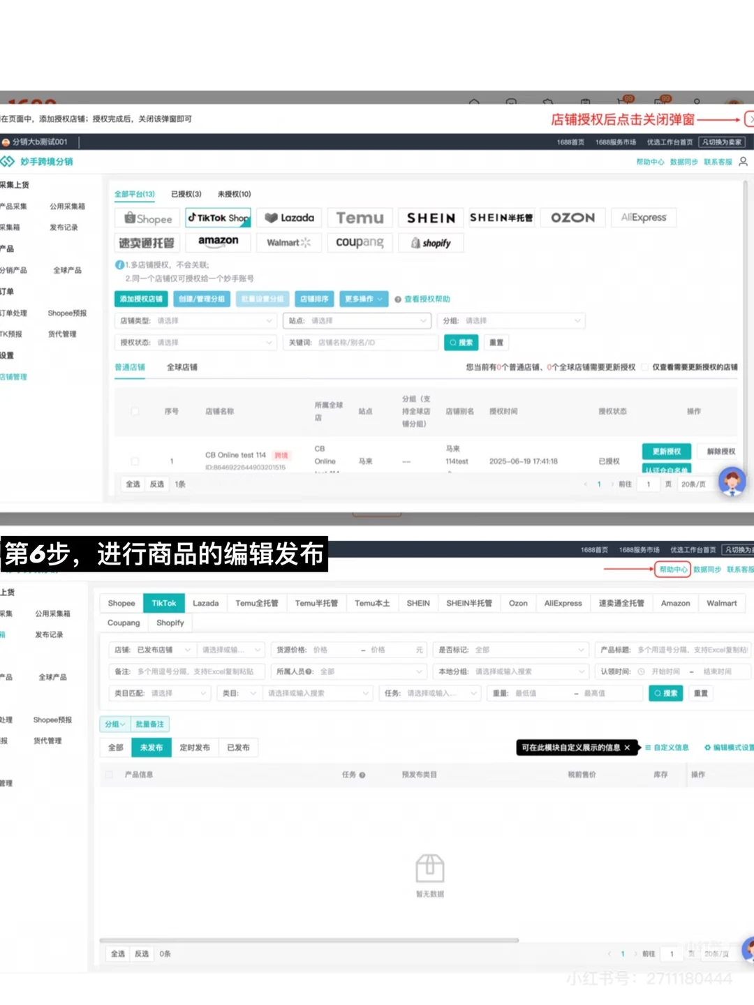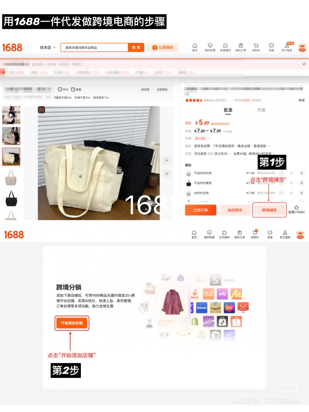另外1688现在还可以一件铺货到跨境电商平台,比如Amazon、TK、Temu、Shopee等,具体操作方法见图3-图6,