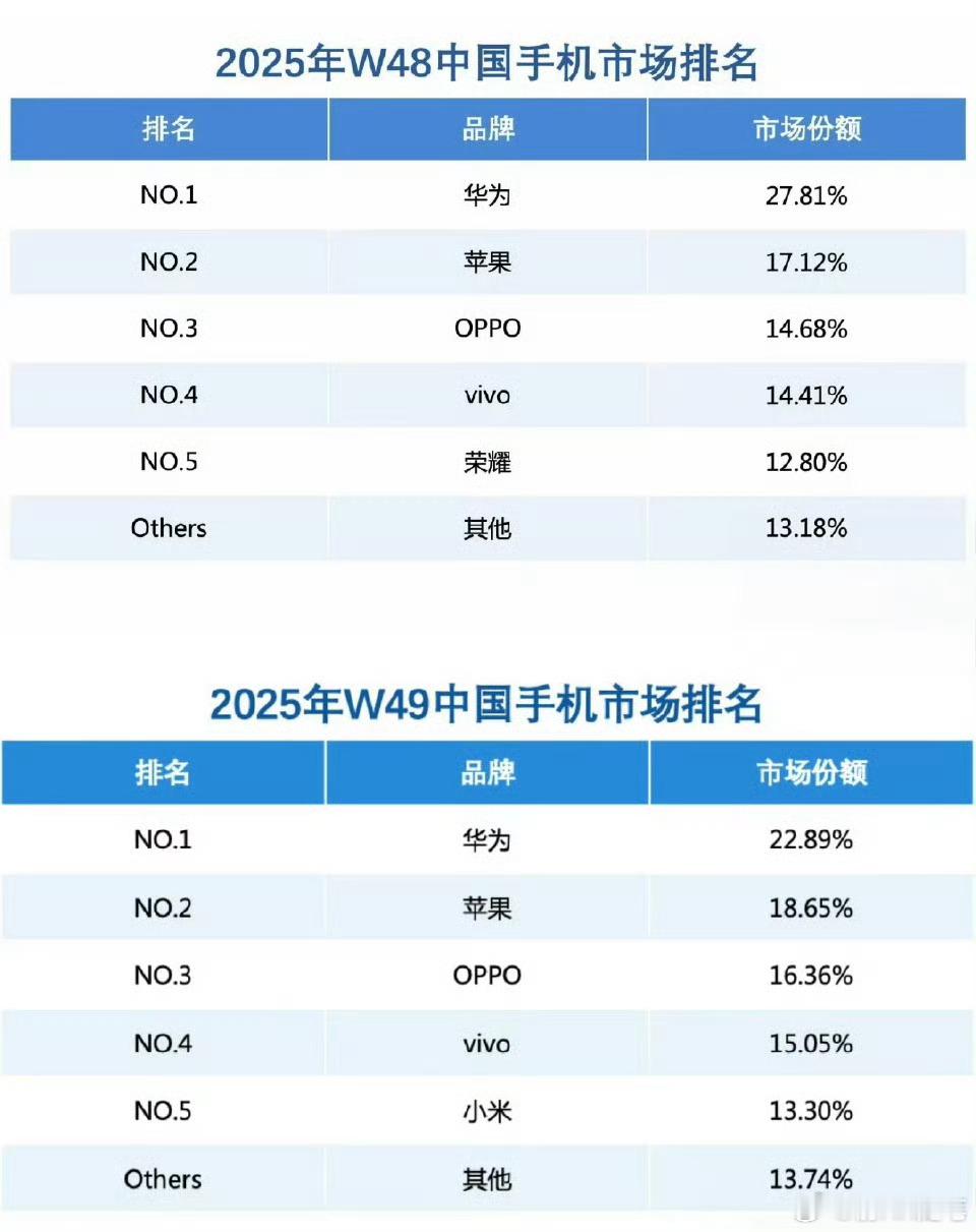 Mate80系列发布后,华为手机重回中国第一。其实这是很正常的,在高通处理器疯狂加价之下,一些吹嘘高通首发厂家低端品牌现在动辄4-5千块,谁受得了?华为Mate80系列一下子就想得无与伦比了,真旗舰机做工、功能,价格却下降了,这是为培养鸿蒙生态的让利,或者说这个降价其实就是相当于鸿蒙系统的隐形补贴和投资投入。现在还只是Mate系列,后续nova系列,畅享系列都会巨大竞争力。27.8%只是一个新起点,也许明年这时候就是常态了。