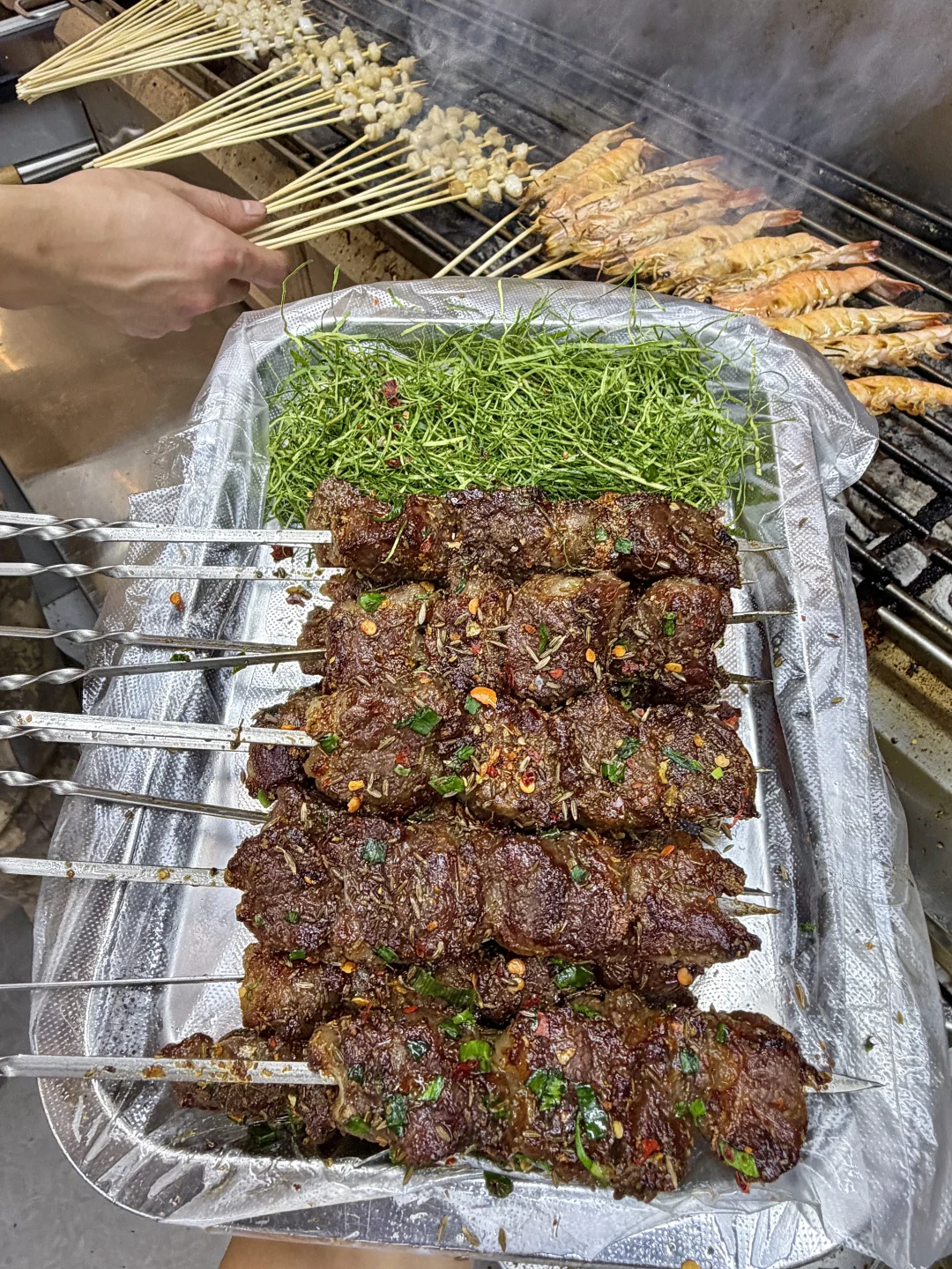 真的名不虚传好吃!还好有长沙老口子带我去吃这家!就在高铁站,附近打工人和学生党都会去吃的小店!没什么环境生意依旧好🔥 均价1-3r的烧烤,食材吃得出的新鲜!!烤鳗鱼吃得出的品质好好!罗氏虾个头又大肉又饱满!还有鱼籽鱼泡、烤和牛肉、牛腩土豆粉……好多长沙特色口味🥹一吃一个不吱声 定位到📍串大福,一定会带朋友来n刷的店