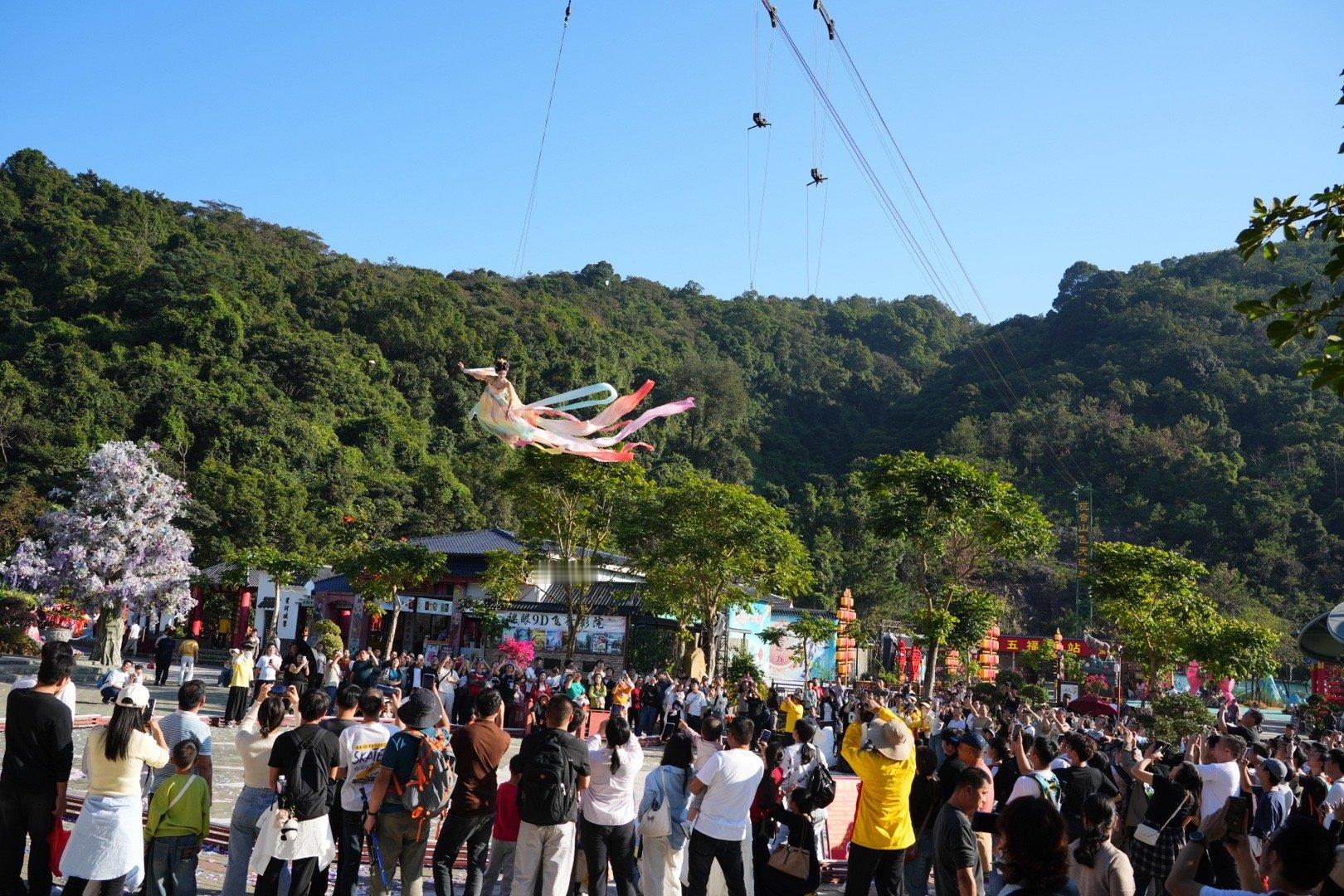 谁能拒绝年末赴一场仙山之约?东莞观音山第五届仙侠会将精彩持续至12月31日, 随手就能和神仙NPC贴贴互动。火上登高途中,转动第一福,摸一模万寿路大寿桃,在仙山福地许下新年的心愿。 年末别宅家!约上亲友赴观音山,在仙侠盛景中告别旧岁,让山水福运加持,满载仙气奔赴2026~东莞观音山仙侠奇缘