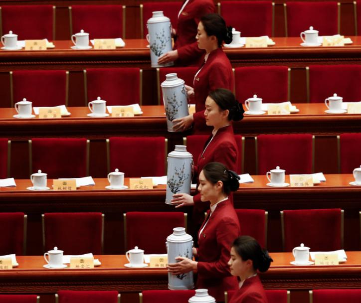 这是人民大会堂服务员们一丝不苟工作的场景,就这些场景啊,被一些人各种阴阳怪气,说是表面工作,形式主义。 好家伙!这种一丝不苟的工作态度要是放在国外,肯定得被某些人吹嘘成什么工匠精神,好一个双标啊。 不说是在人民大会堂这么一个庄重严肃的场合了,你哪怕去一个高档一点的餐厅,服务礼仪和餐桌摆放那都是最基本的一个要求好不好。 就不说什么高档餐厅了,哪怕你平时参加一个重要的公司会议,桌子上的摆放也是规规矩矩的。 要是进去一看,桌子上的摆放乱七八糟的,你要是老板,你会称赞他们:不错,不讲究形式主义,继续保持。 那可就奇了怪了。 就这最基本的一种礼仪,也可以说是礼貌,古今中外都是一样的。 最不济,哪怕咱们平头老百姓家里来了一个客人,你不也是得给他碗筷摆得整整齐齐的嘛。