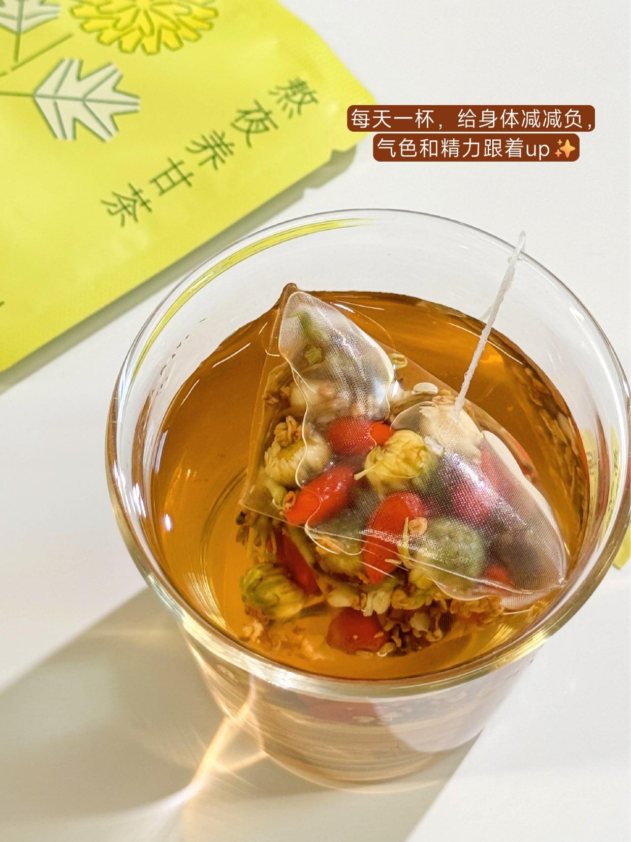 配料表是对肝肝很好的食材:菊花+枸杞+金银花+牛蒡根+决明子,