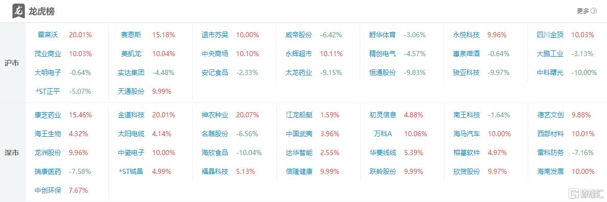 龙虎榜单日净买入额前三为雪人集团、金风科技、通光线缆,分别为3.25亿元、2.34亿元、1.73亿元。