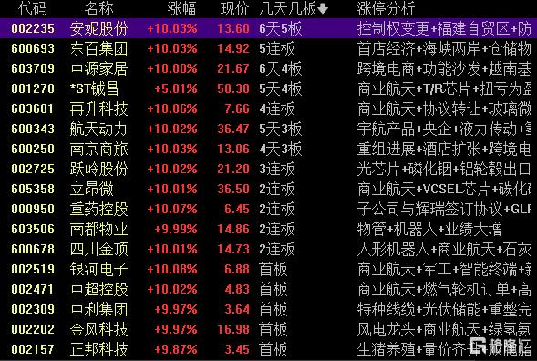 高位股方面,福建本地股东百集团5连板、安妮股份6天5板,商业航天概念股再升科技4连板。北交所个股表现活跃,天力复合、驰诚股份30CM涨停。