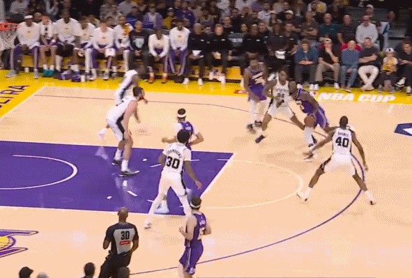 哈哈哈,老詹隔扣之后正好截到一张表情,确实许久不见这样的场面了,值得细品一下~以及我马刺又是背景板 41岁詹姆斯隔扣 詹姆斯隔扣